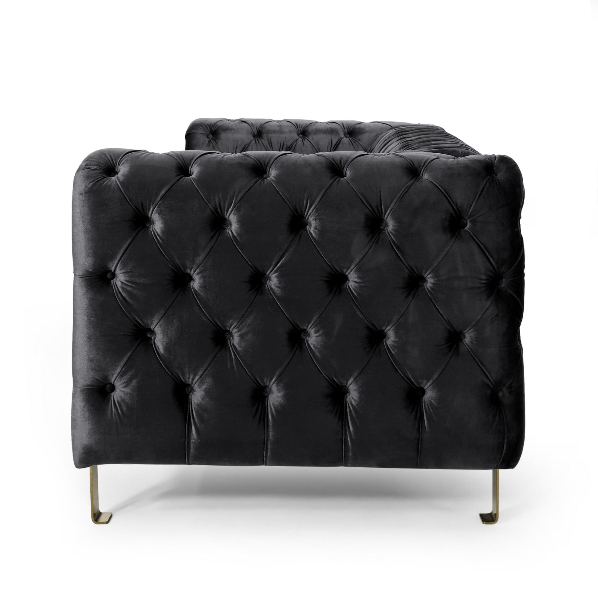 Canapé Nua, Chesterfield capitonné en velours noir, 84 pouces, pieds dorés modernes