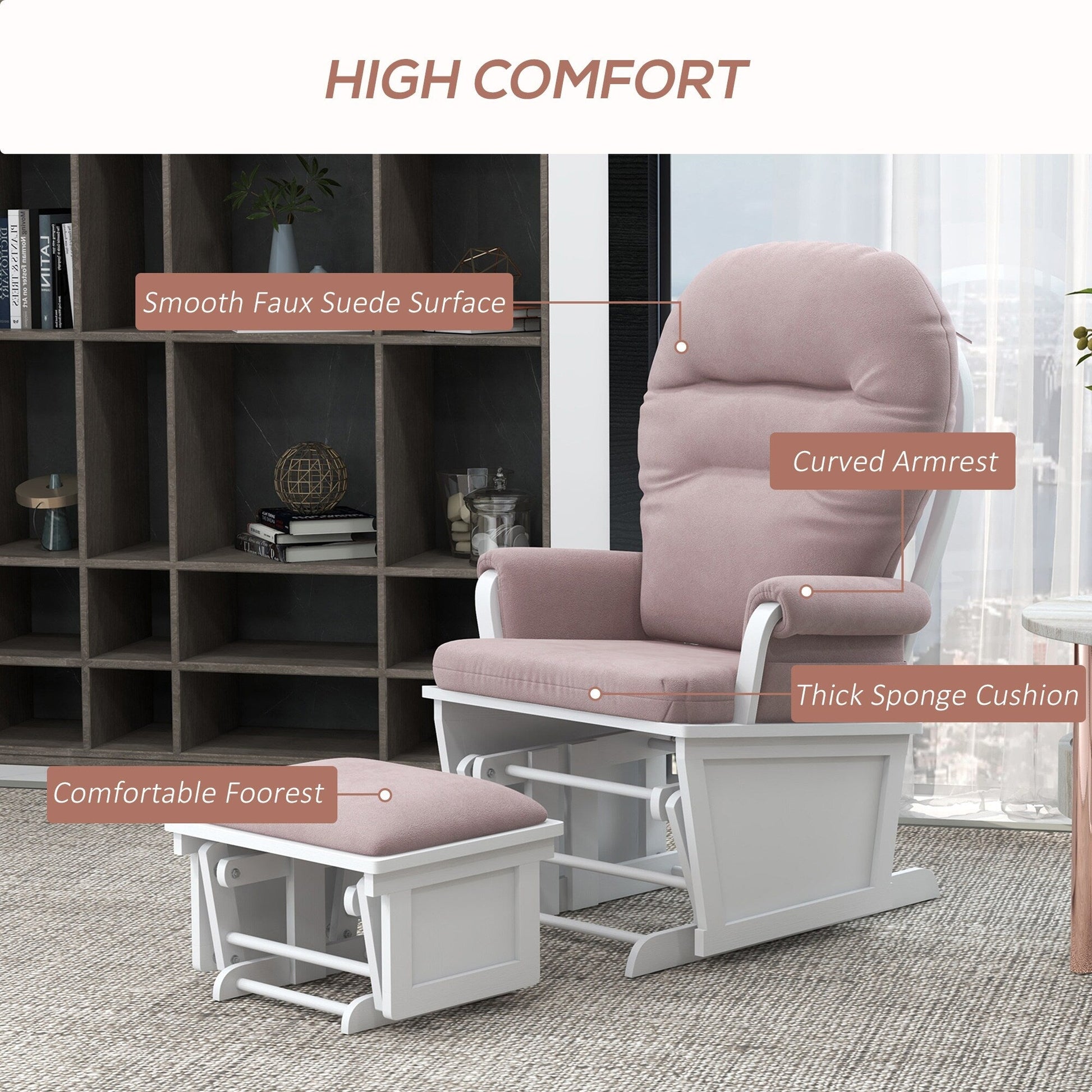 Fauteuil à bascule pour chambre d'enfant, coussin épais et rembourré, fauteuil en lin doux avec pouf et base en bois