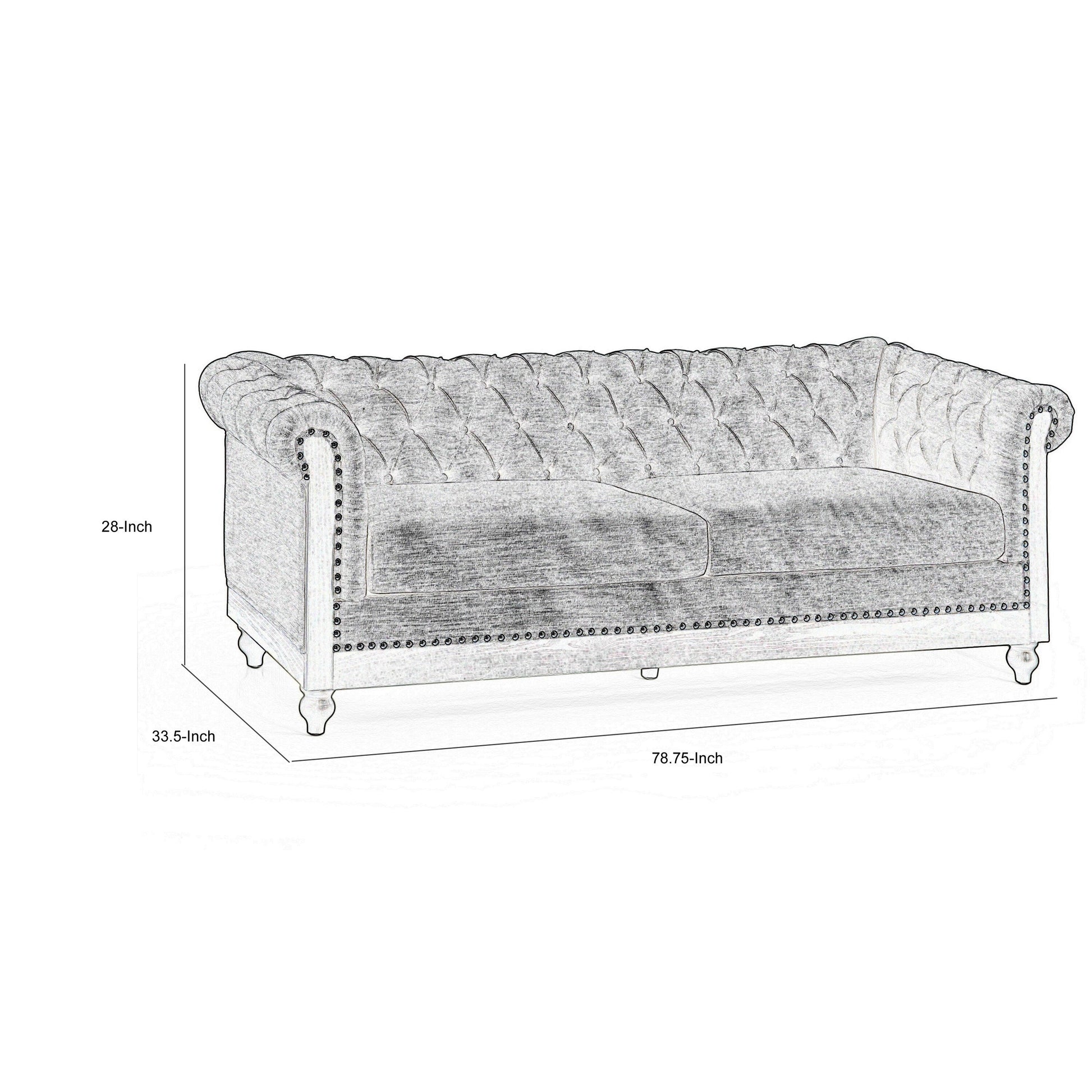 Canapé Ober, Chesterfield capitonné à boutons, rivets, gris, 86 pouces, taupe brun