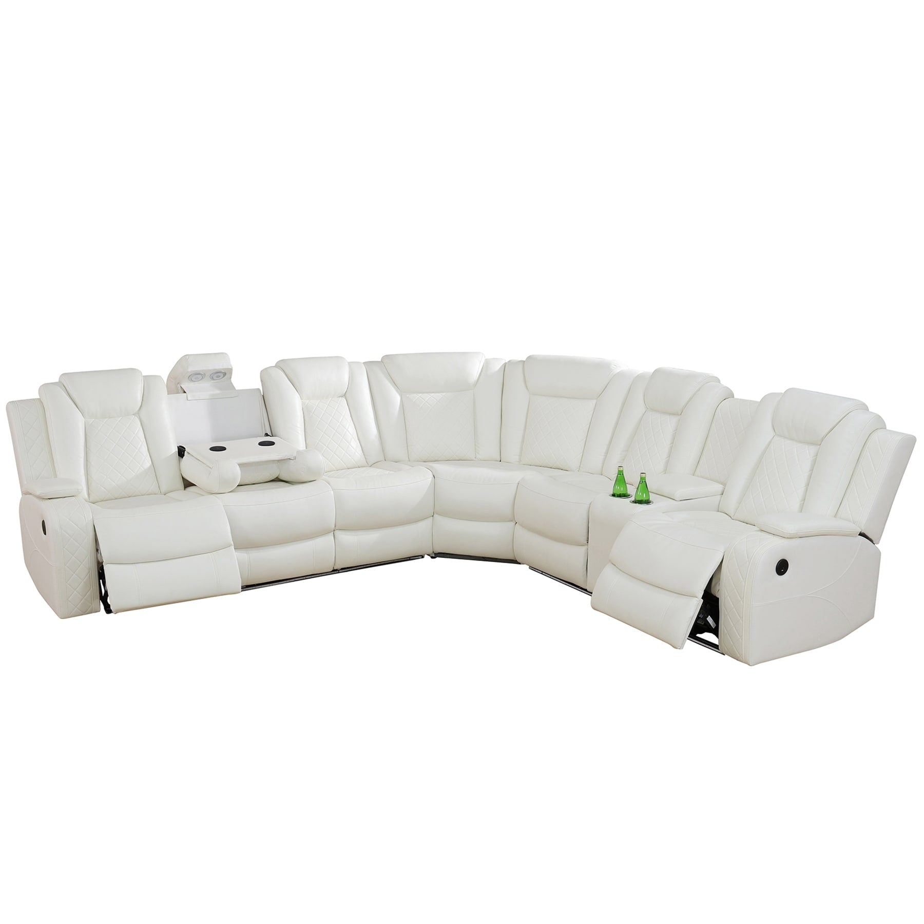 Ensemble de canapés inclinables de salon 3 pièces en cuir respirant blanc cassé