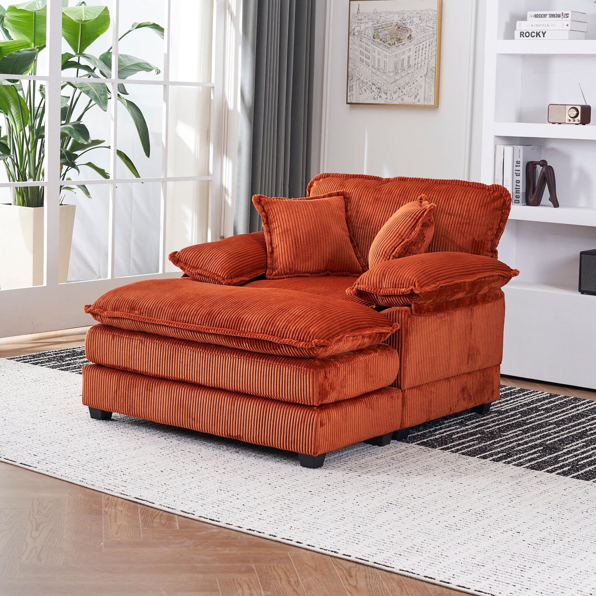 Canapé simple profond en velours côtelé orange 59,3 avec 2 coussins décoratifs et pouf pour le salon