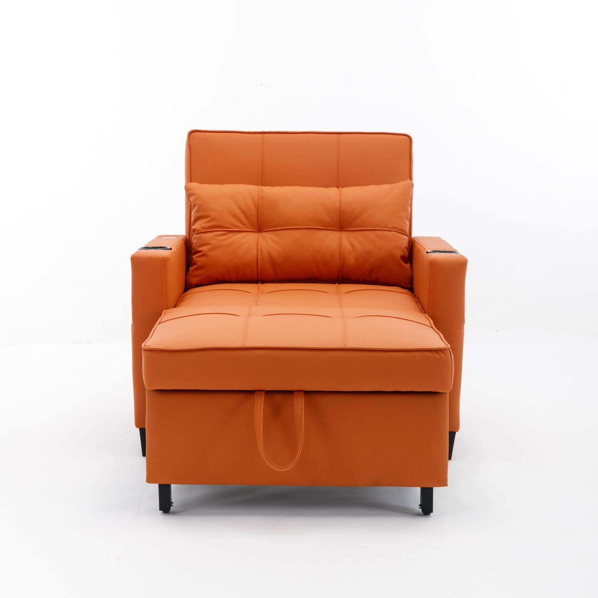 Canapé convertible 3 en 1 en similicuir orange 68.12 avec ports USB et tissu résistant à l'usure pour le salon