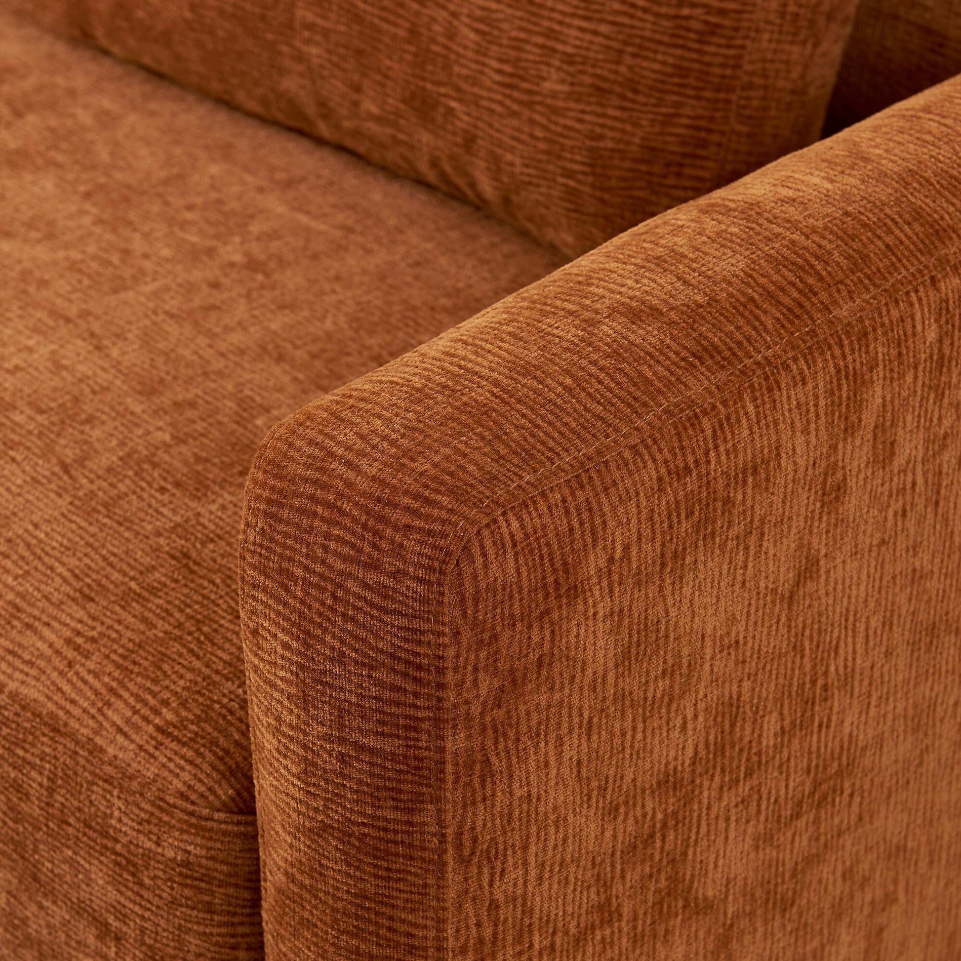 Canapé causeuse en chenille orange avec coussins de dossier et oreillers