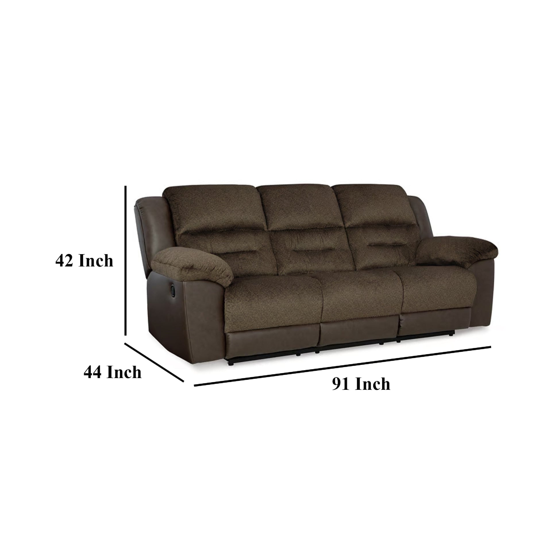 Canapé inclinable manuel Orman, similicuir marron chocolat mat, 91 pouces