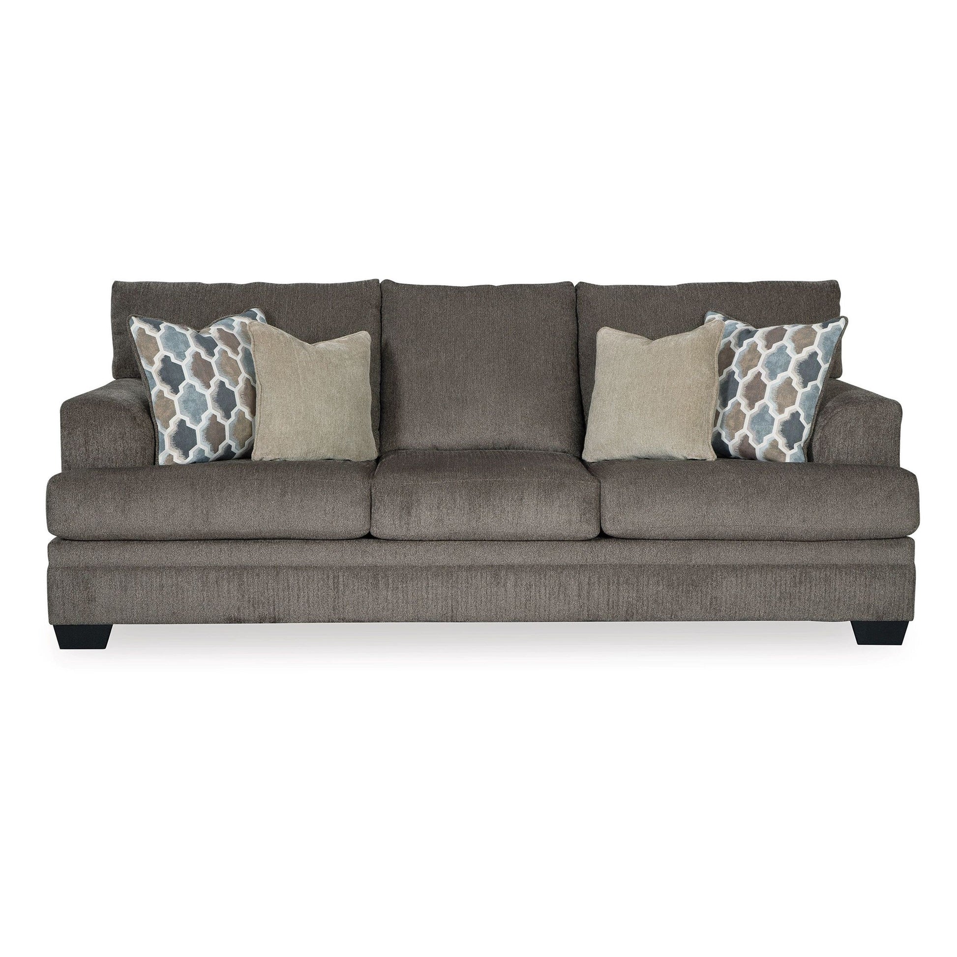 Canapé Orsten, polyester gris ardoise, 4 coussins décoratifs, 233 cm
