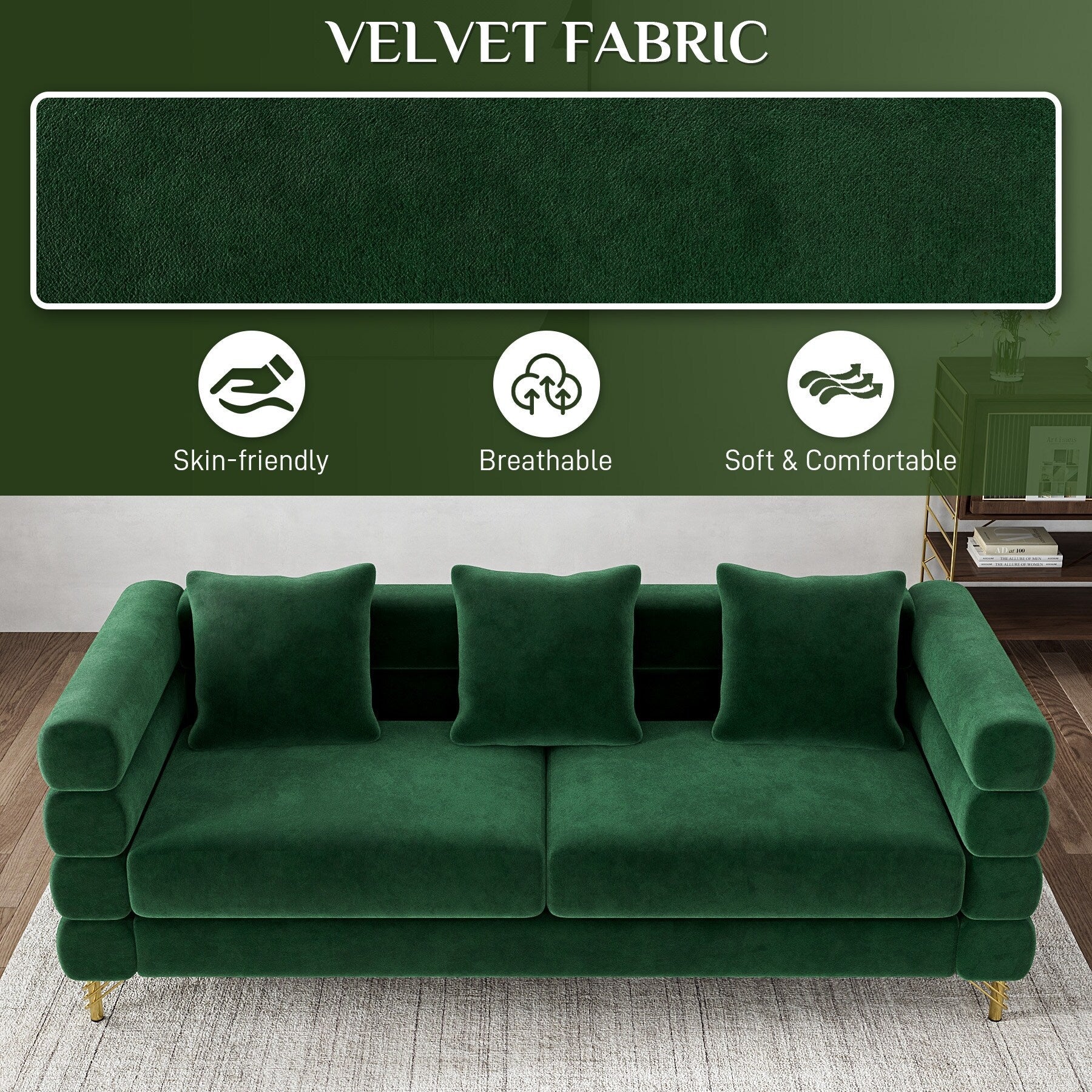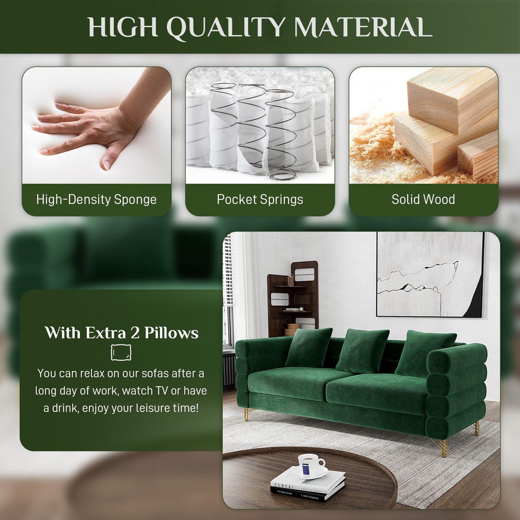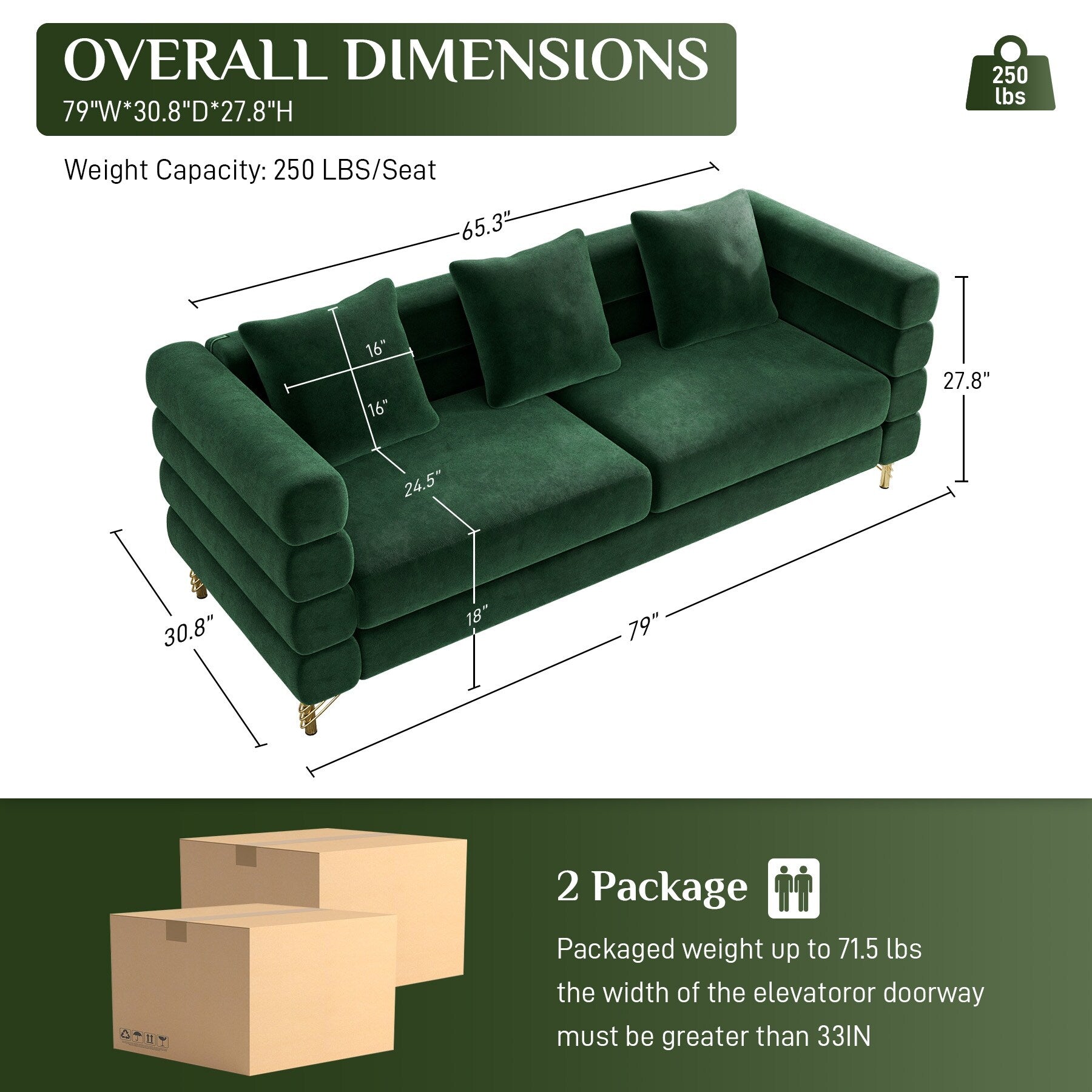Doté d'un tissu luxueux, ce canapé apporte une touche de sophistication à n'importe quelle pièce. Son assise profonde, agrémentée d'un coussin de 7,6 cm, vous invite à vous détendre après une longue journée. Grâce à sa construction robuste et à son rembourrage en mousse haute densité, ce canapé offre un confort et un soutien inégalés. Que vous vous détendiez avec un bon livre, receviez vos amis et votre famille ou profitiez d'une soirée cinéma, ce canapé s'adapte à toutes les occasions.