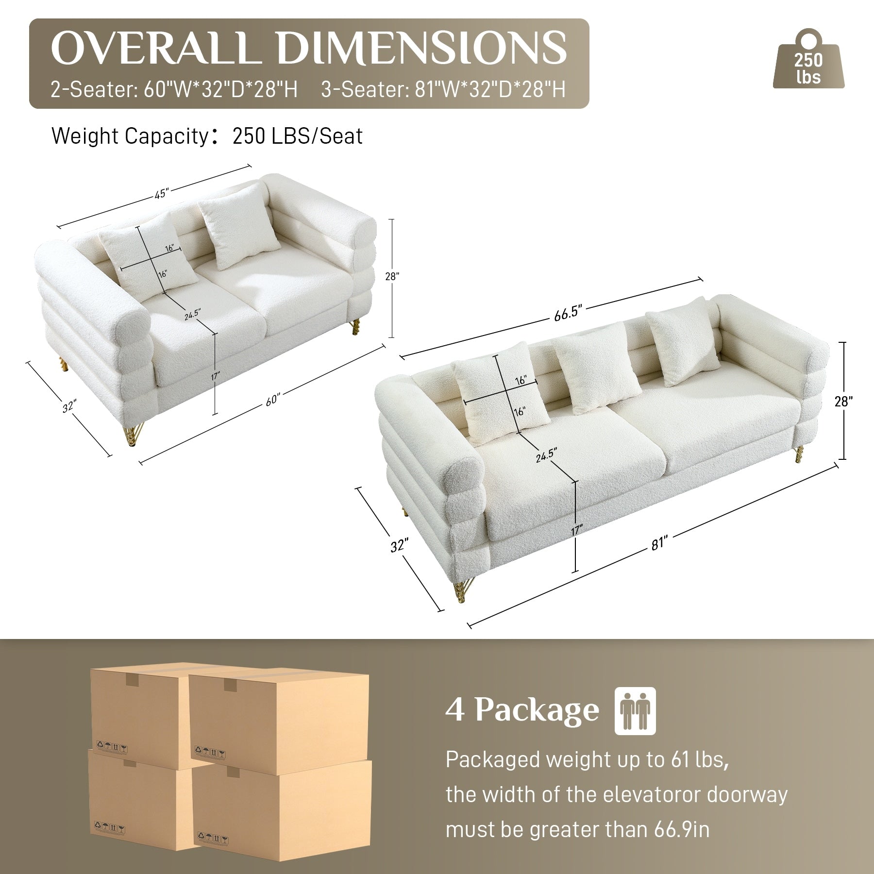 - Dimensions du produit : Oreillers - 16'L x 16'W; Canapé 2 places - 60'L x 32'W x 28'H; Canapé 3 places - 81'L x 32'W x 28'H.