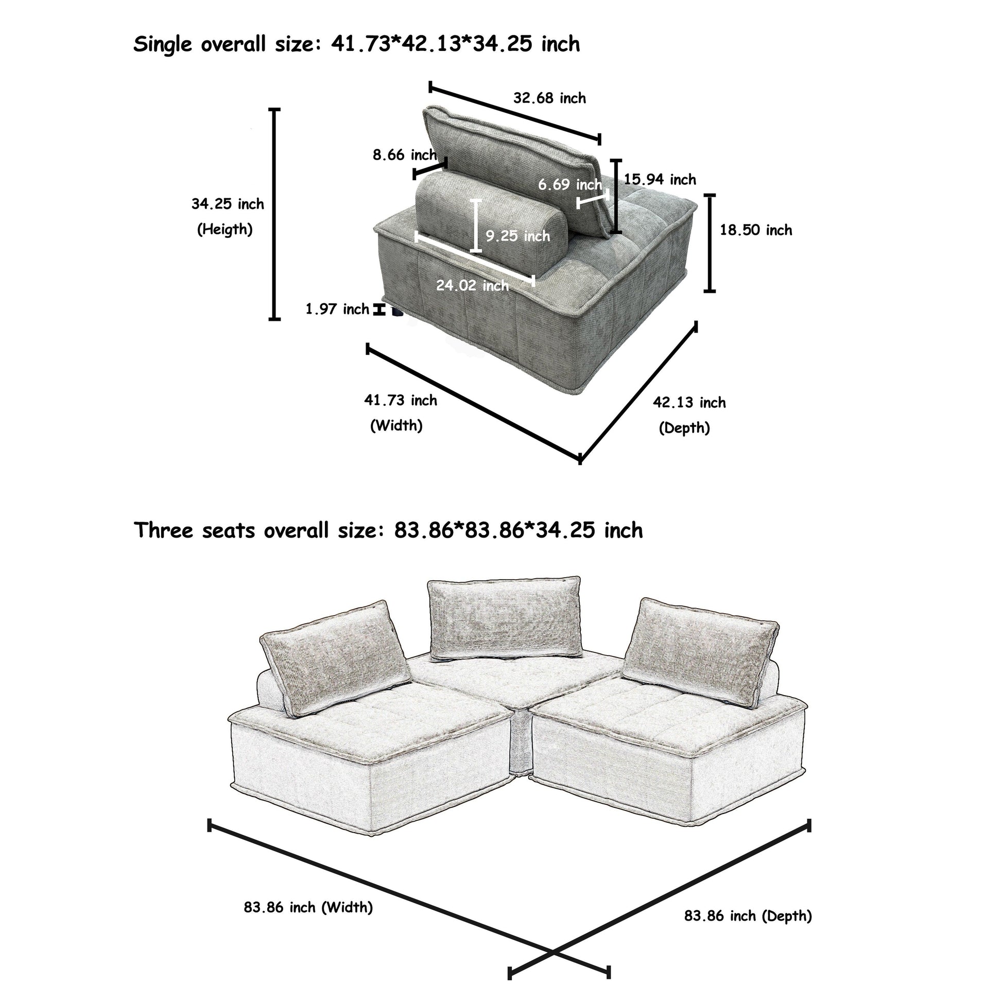 Ensemble de canapés modulaires carrés surdimensionnés en chenille, 3 pièces, avec coussins en mousse haute densité, combinaison libre