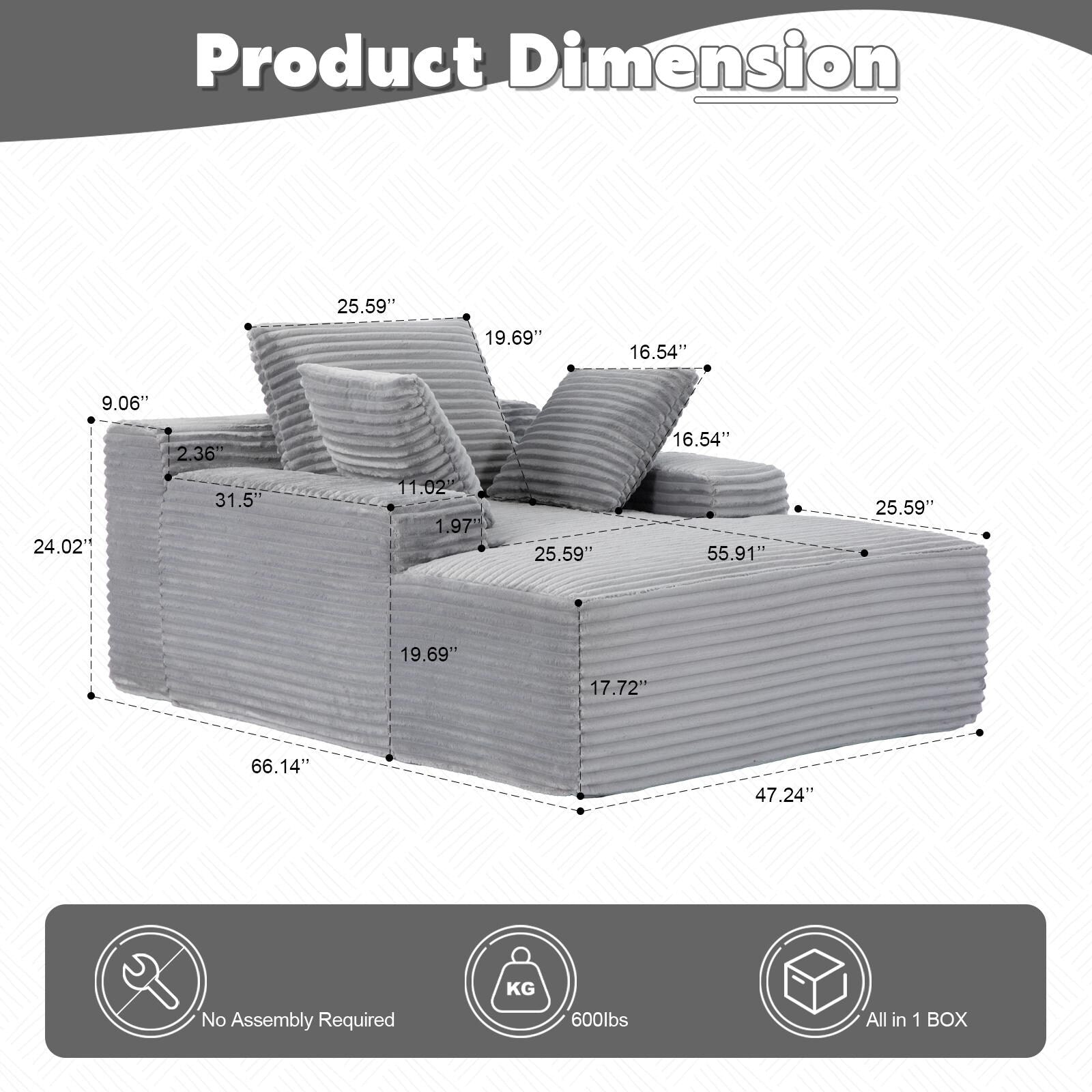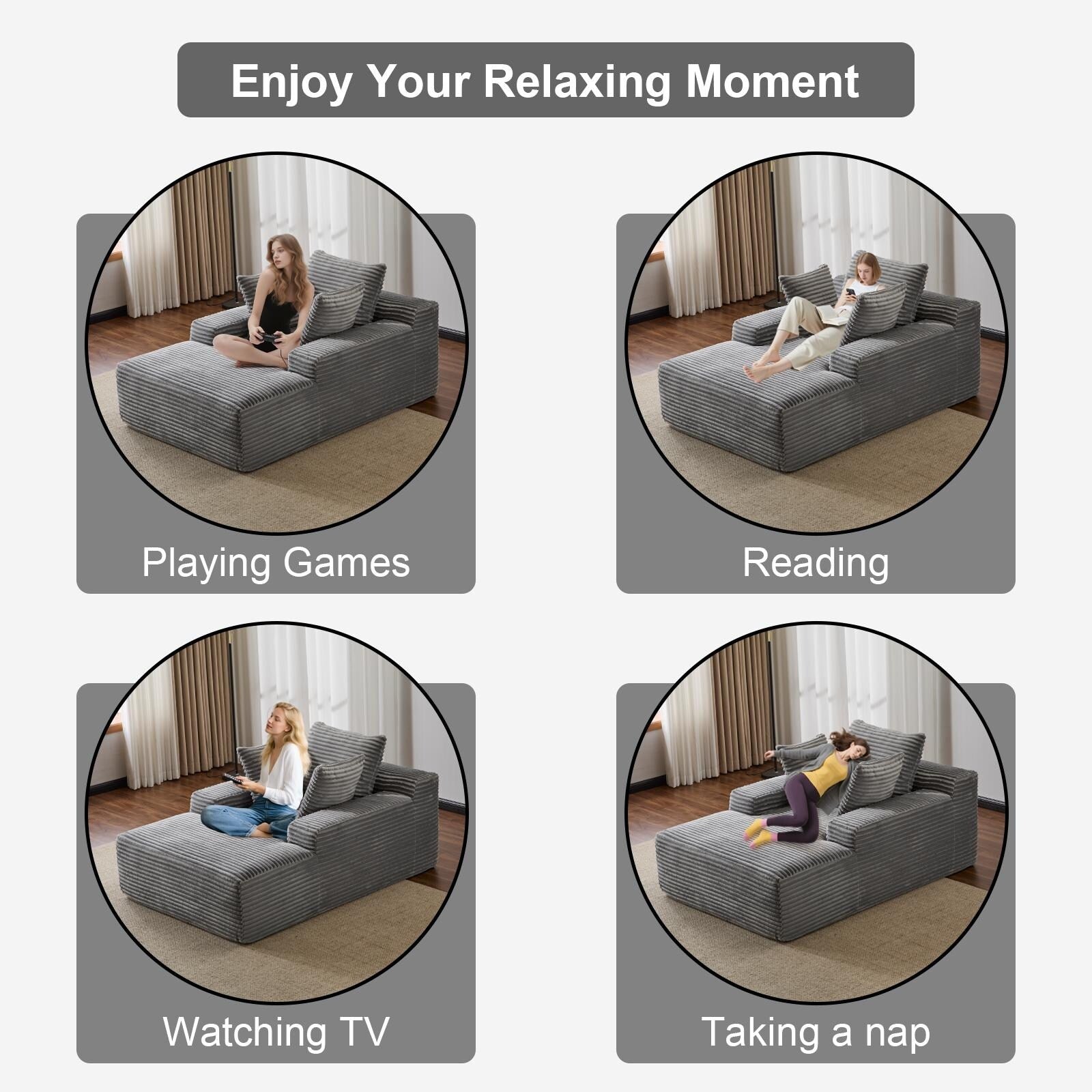Canapé-lit méridienne surdimensionné en velours côtelé avec 3 coussins et accoudoirs larges, sans assemblage, gris