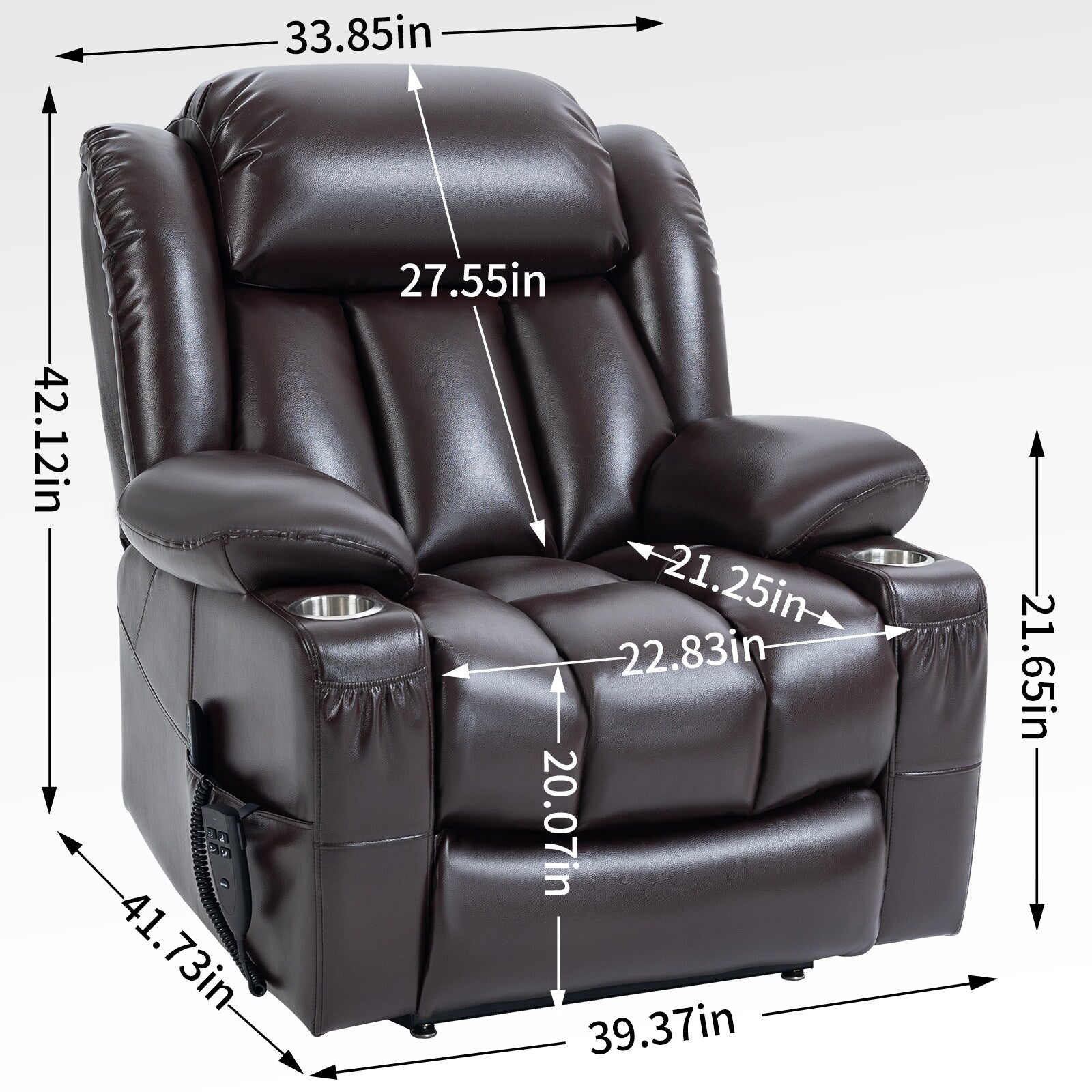 Fauteuil inclinable électrique surdimensionné en similicuir avec massage et chauffage