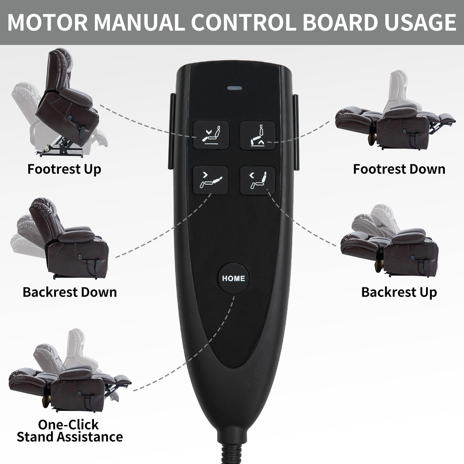 - Système de levage et d'inclinaison électrique à double moteur : Équipé d'un système avancé à double moteur, ce fauteuil vous permet de le soulever ou de l'incliner en douceur d'une simple pression sur un bouton. Il s'incline à près de 180 degrés, offrant une position entièrement réglable pour un confort maximal.