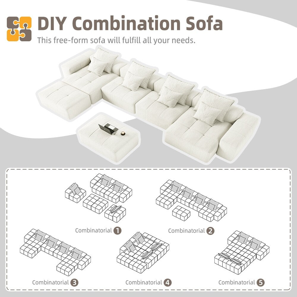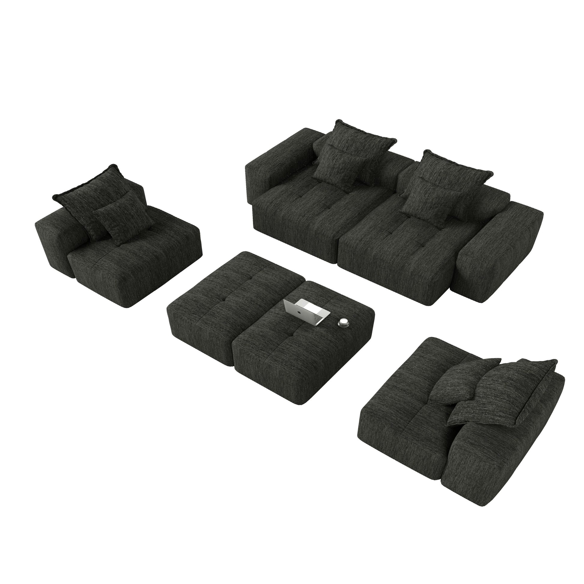 Canapé modulaire surdimensionné 6 places en chenille avec coussins et 8 oreillers pour le salon