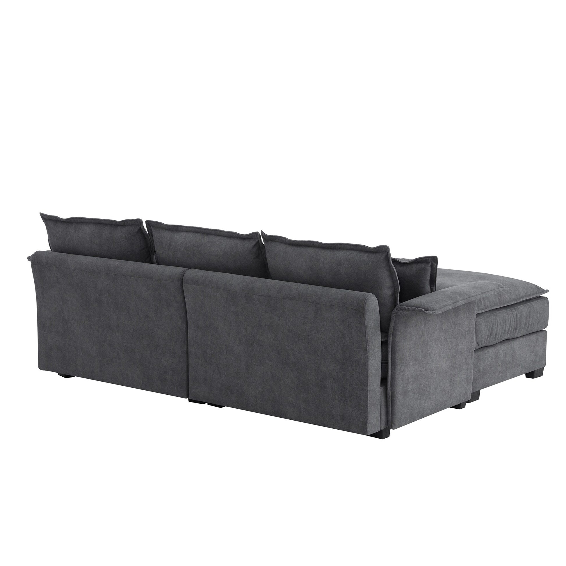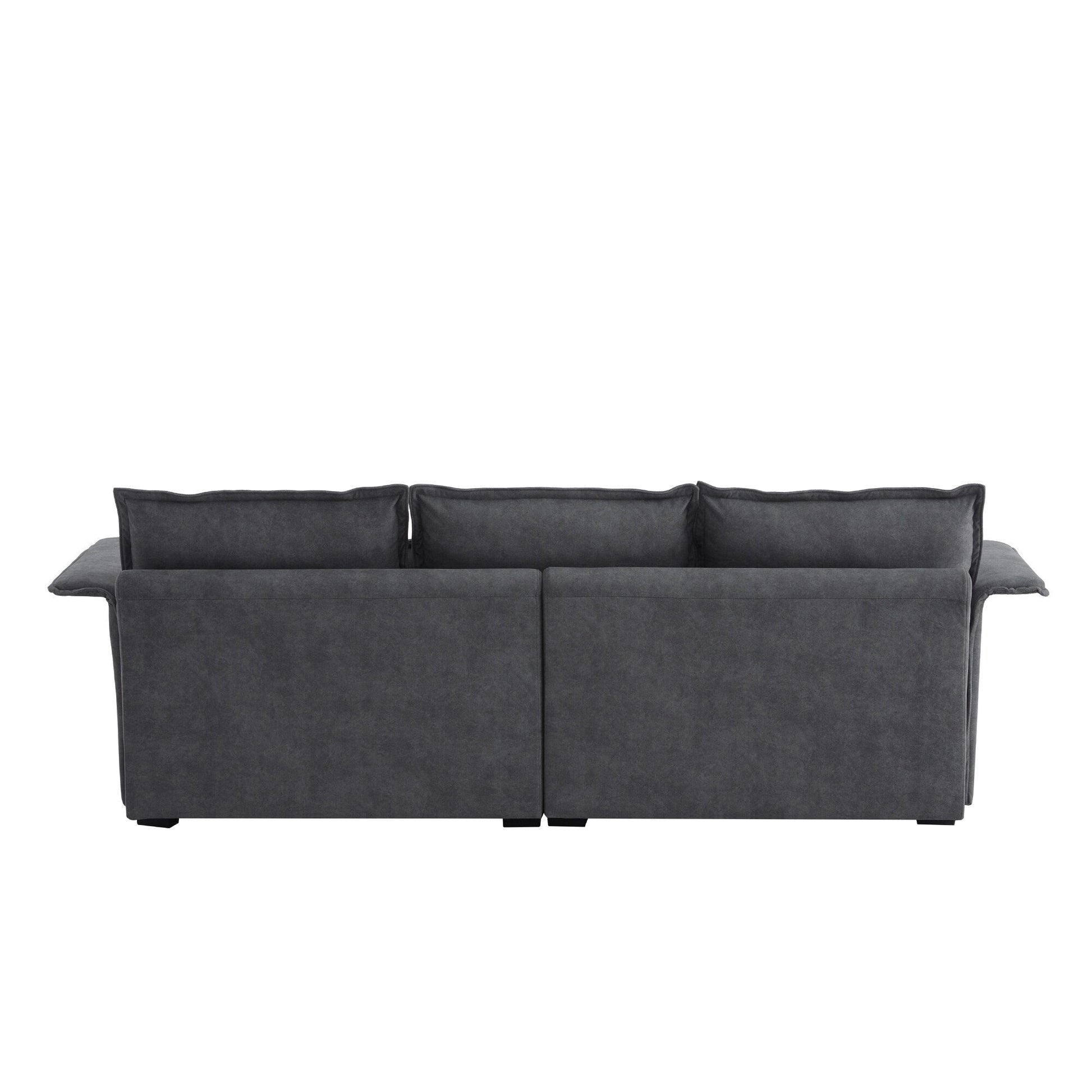 Canapé sectionnel surdimensionné avec accoudoirs en bois courbé, meuble d'intérieur rembourré avec coussins doubles, canapé en L avec pouf