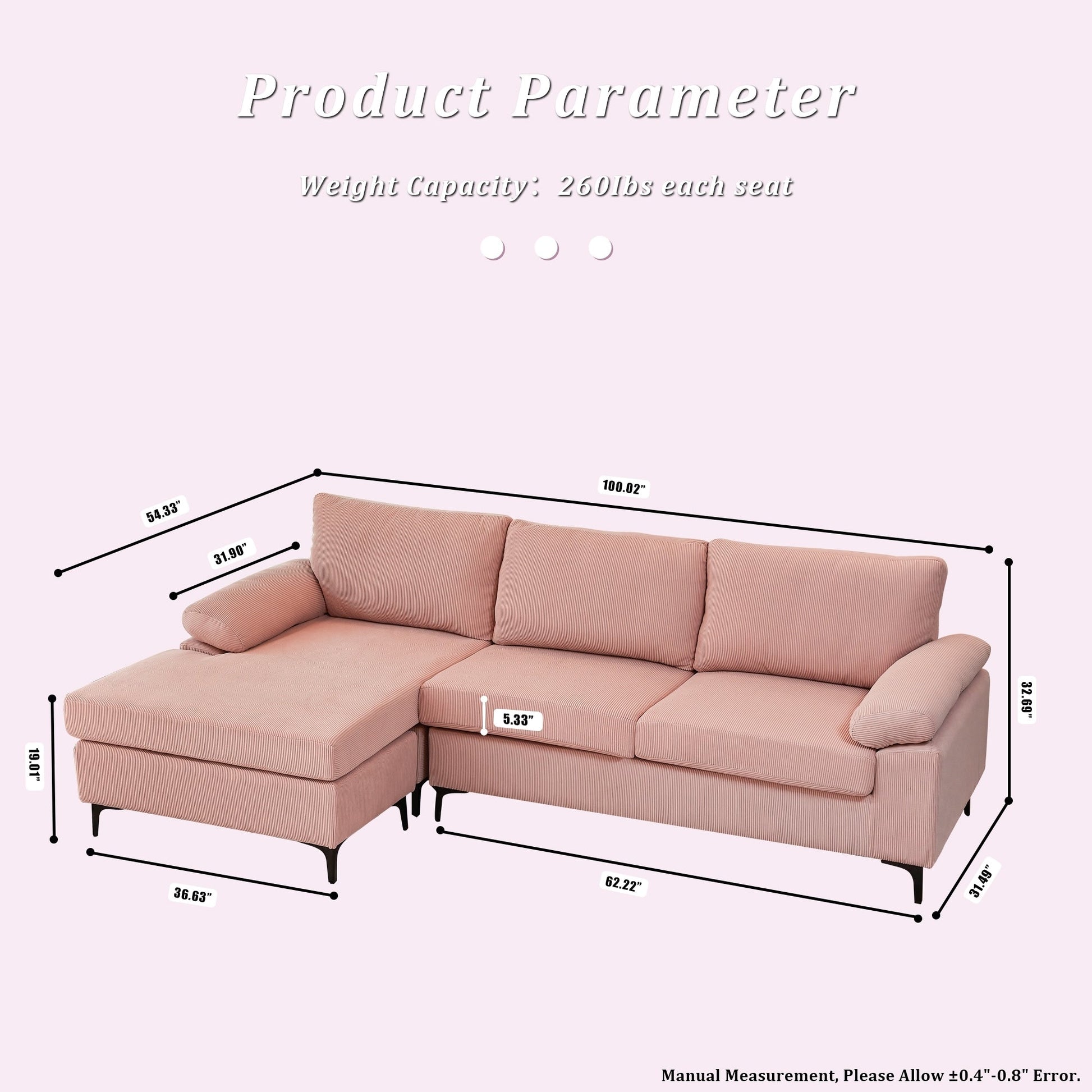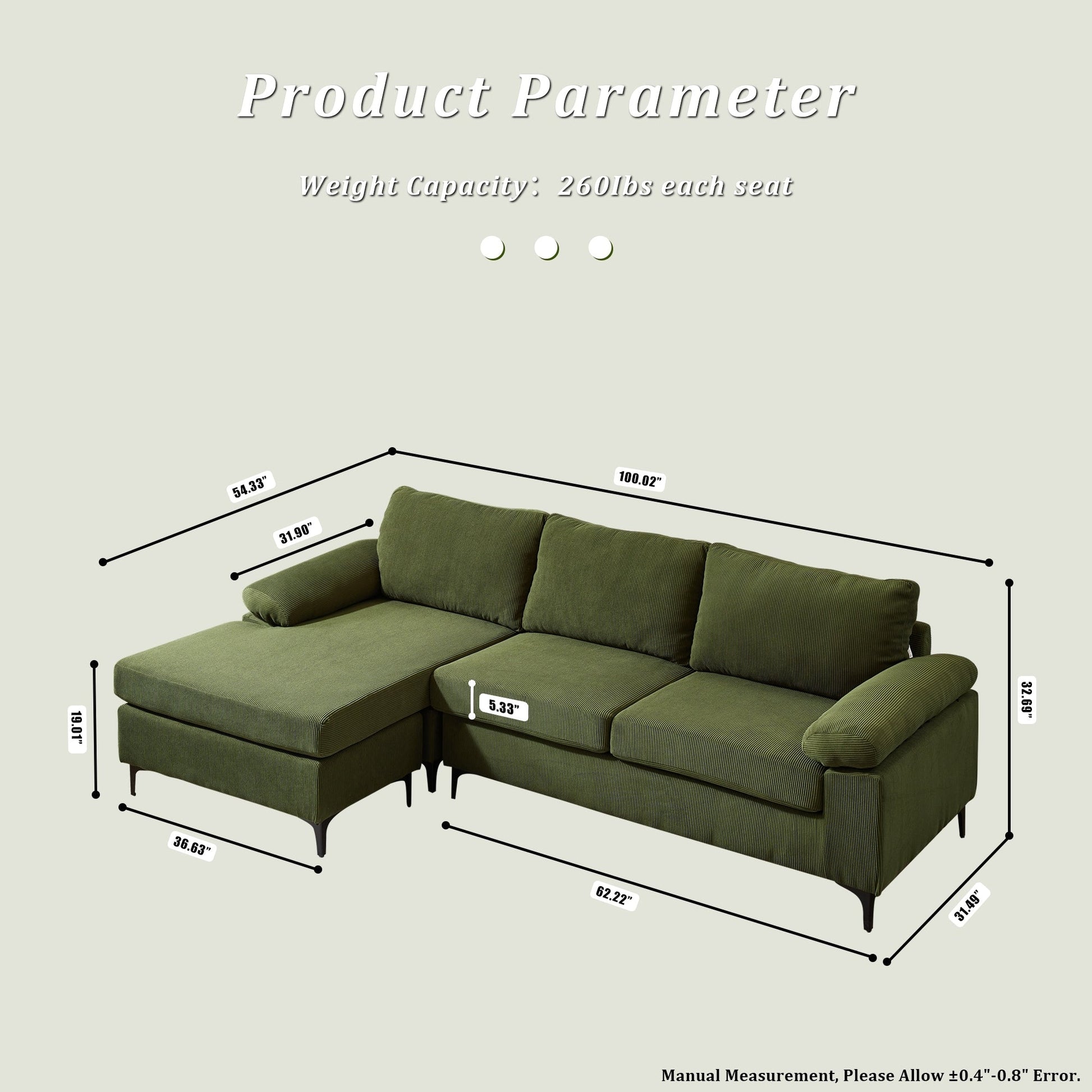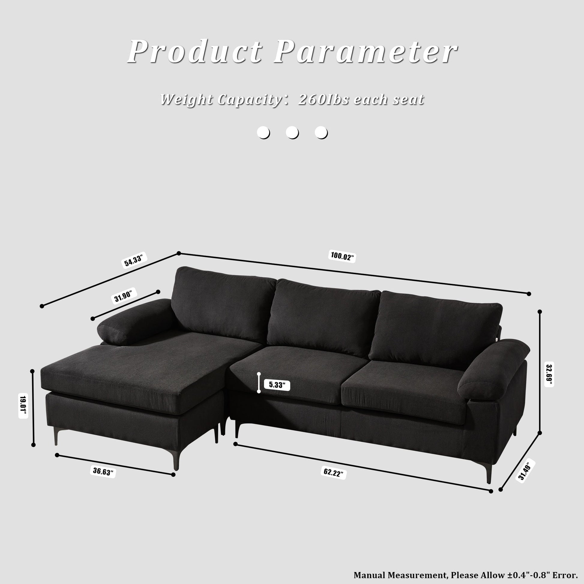 - Dimensions du canapé : 54,33' P x 100,92' L x 32,69' H