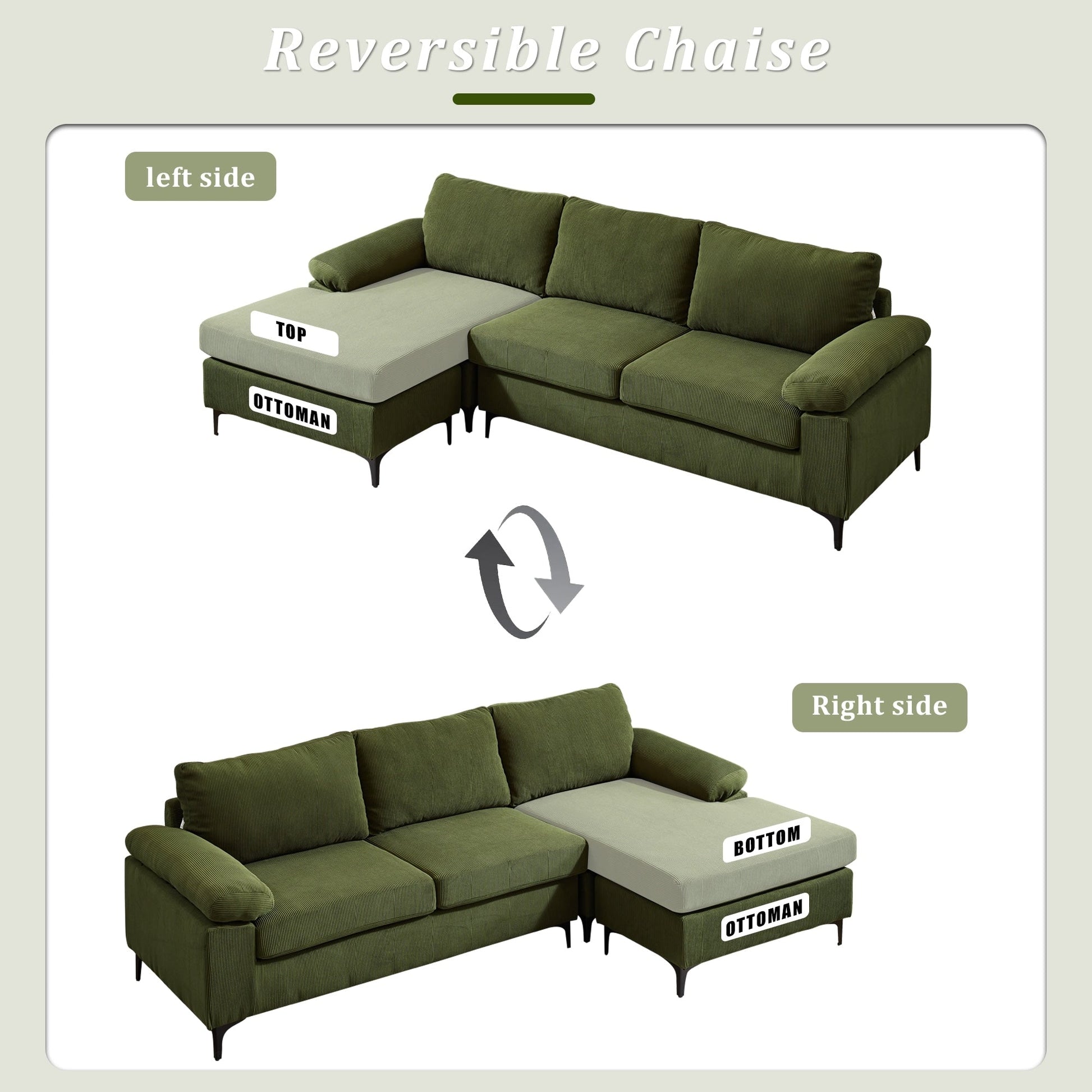 Canapé méridienne réversible OVIOS avec coussins moelleux et pieds en métal
