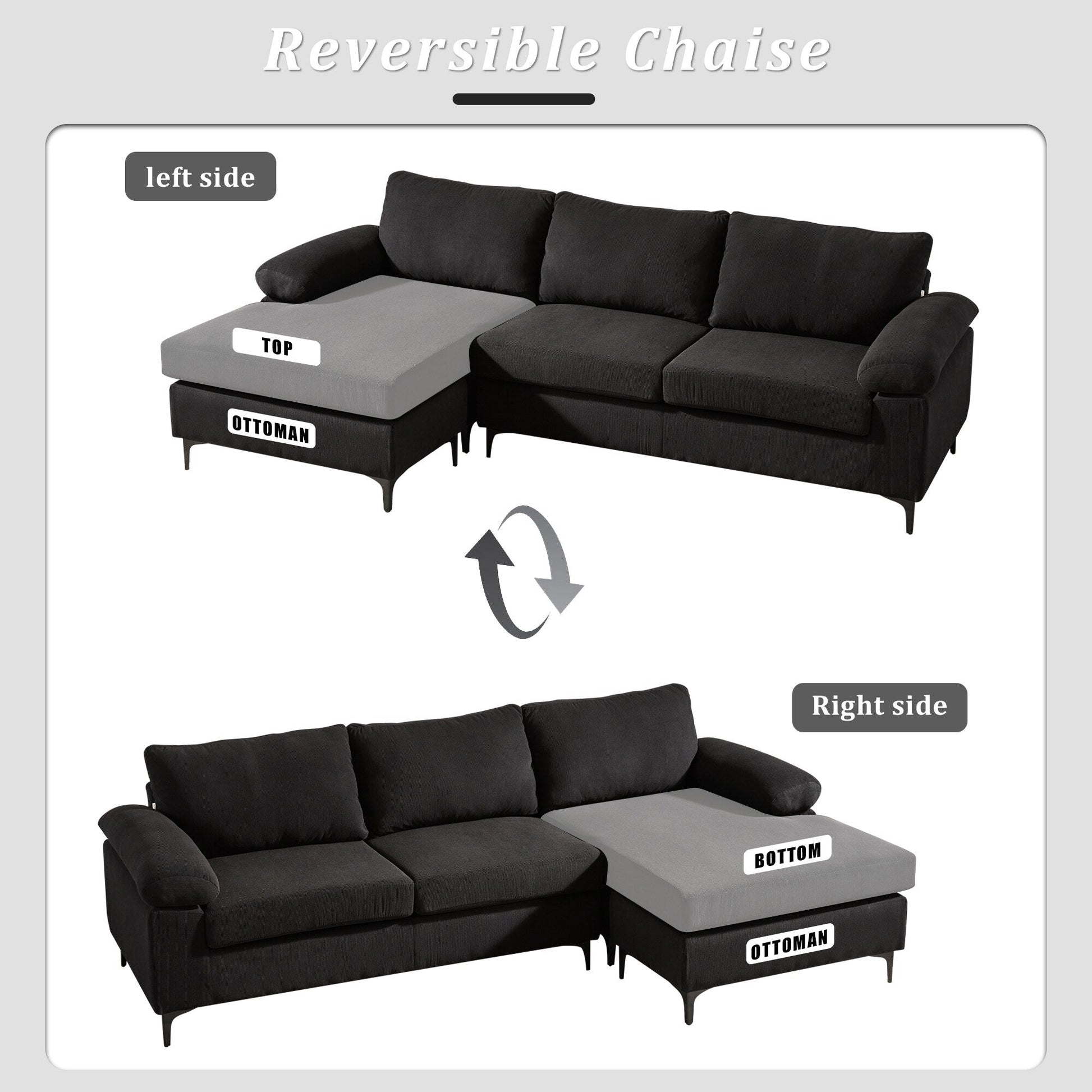 Ajoutez une touche de luxe à votre salon avec le canapé méridienne OVIOS avec coussins et pieds en métal. Son tissu texturé est agréable au toucher et ne se froisse pas facilement. Profitez d'une assise confortable grâce à son éponge haute densité et son coussin d'assise moelleux. Ses pieds en métal robustes et sa structure solide avec ressorts hélicoïdaux de haute qualité assurent stabilité, durabilité et sécurité. Les coussins de dossier offrent un espace généreux pour se détendre ou dormir.