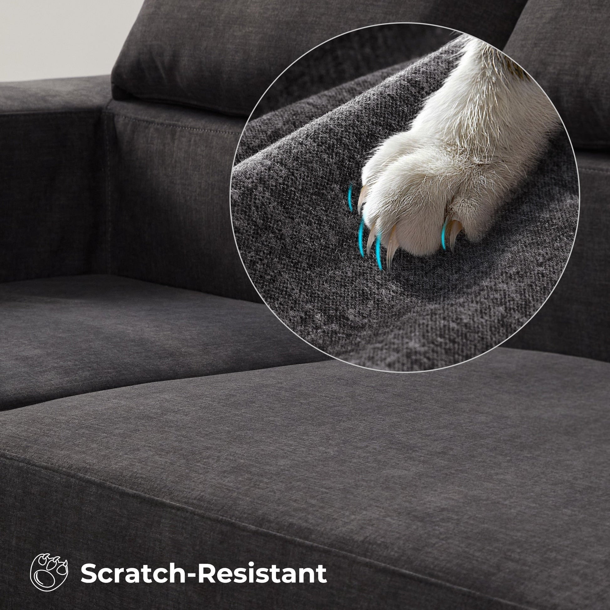 Velours anti-rayures : Fabriqué en velours moelleux, notre canapé est doux, respirant et résistant à l'usure. Dites adieu aux plis et à la perte de poils ! Grâce au velours anti-rayures, votre canapé reste impeccable.