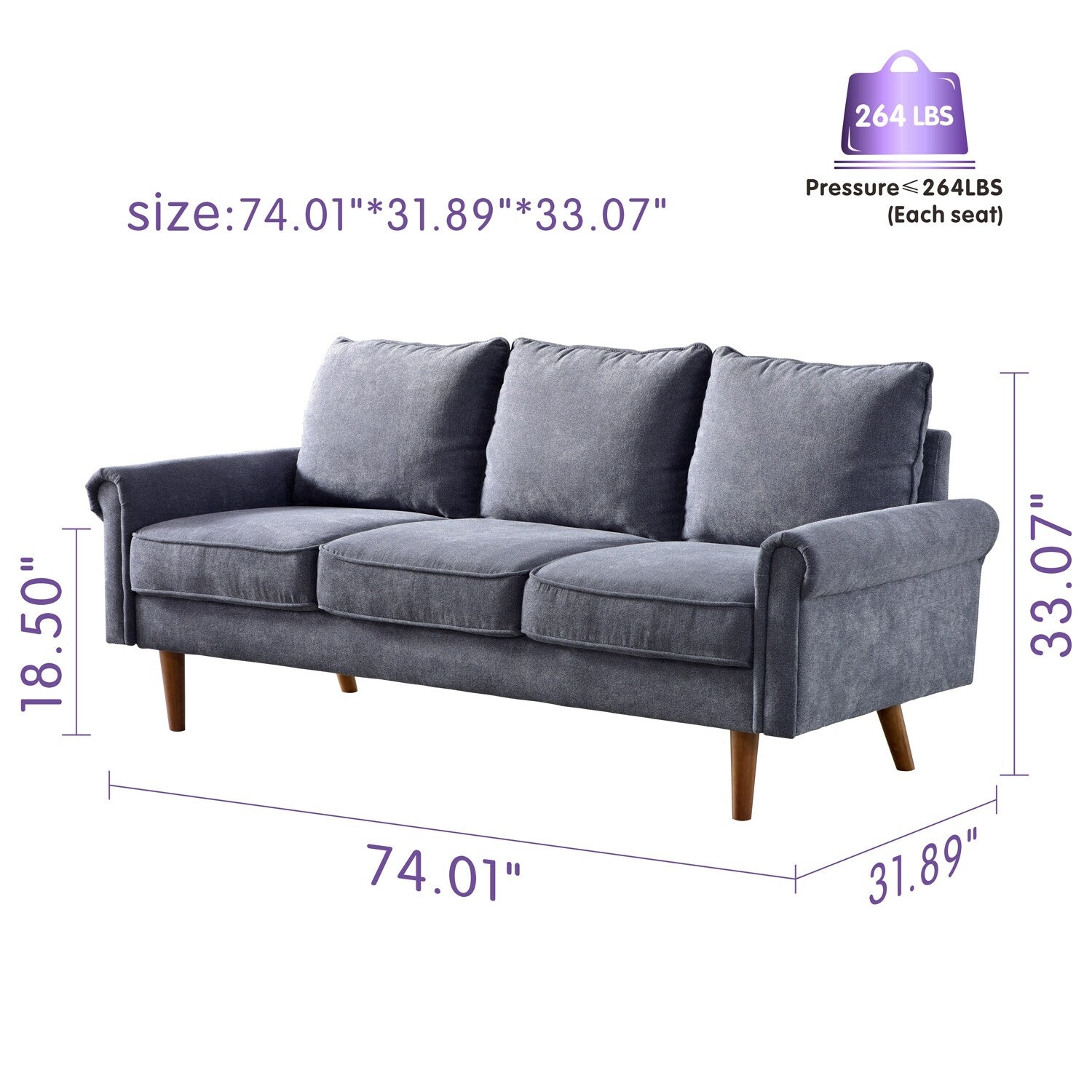 - Mesure 74,02 pouces de long x 31,89 pouces de large x 33,07 pouces de haut