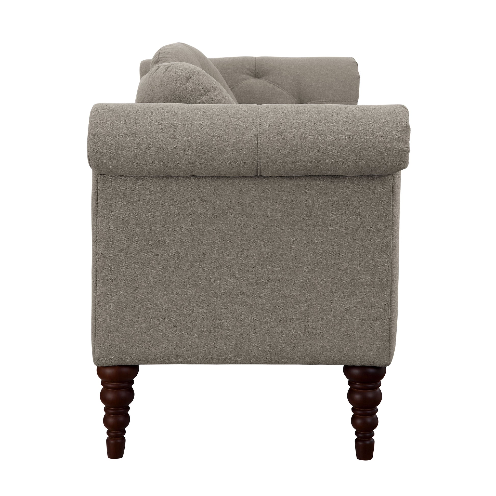 Ajoutez une touche de sophistication à votre intérieur avec le canapé Oxlip de Fremont & Park. Son style traditionnel moderne, sa forme profilée et ses touches classiques créent un style intemporel, parfait pour tous les espaces. Son revêtement en tissu capitonné en losanges, ses pieds en bois tourné, ses accoudoirs arrondis et son dossier concave offrent confort et élégance. Ce canapé est livré avec deux coussins ronds capitonnés pour un confort accru et est disponible en marron, bleu et gris tourterelle pour s'harmoniser avec tous les intérieurs.