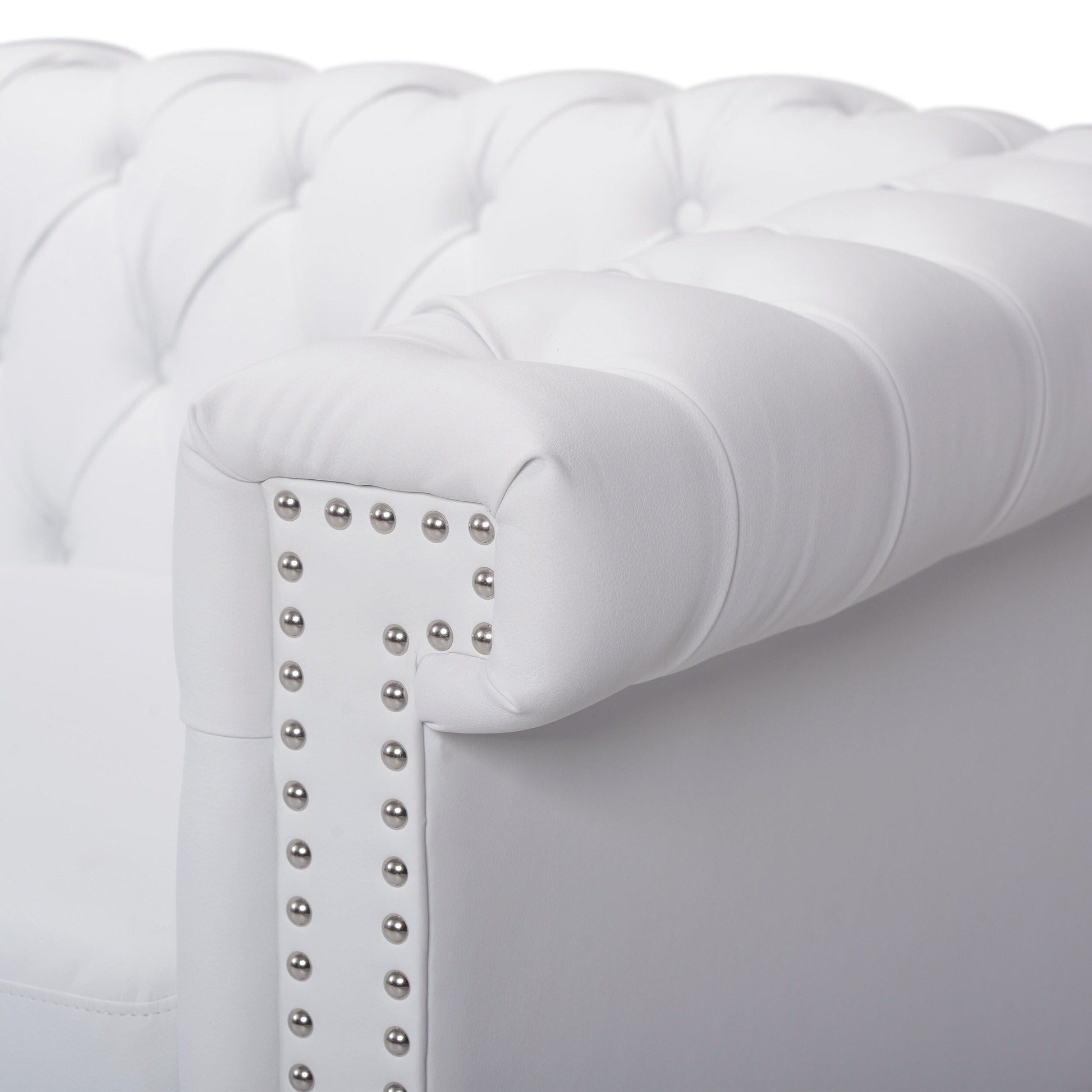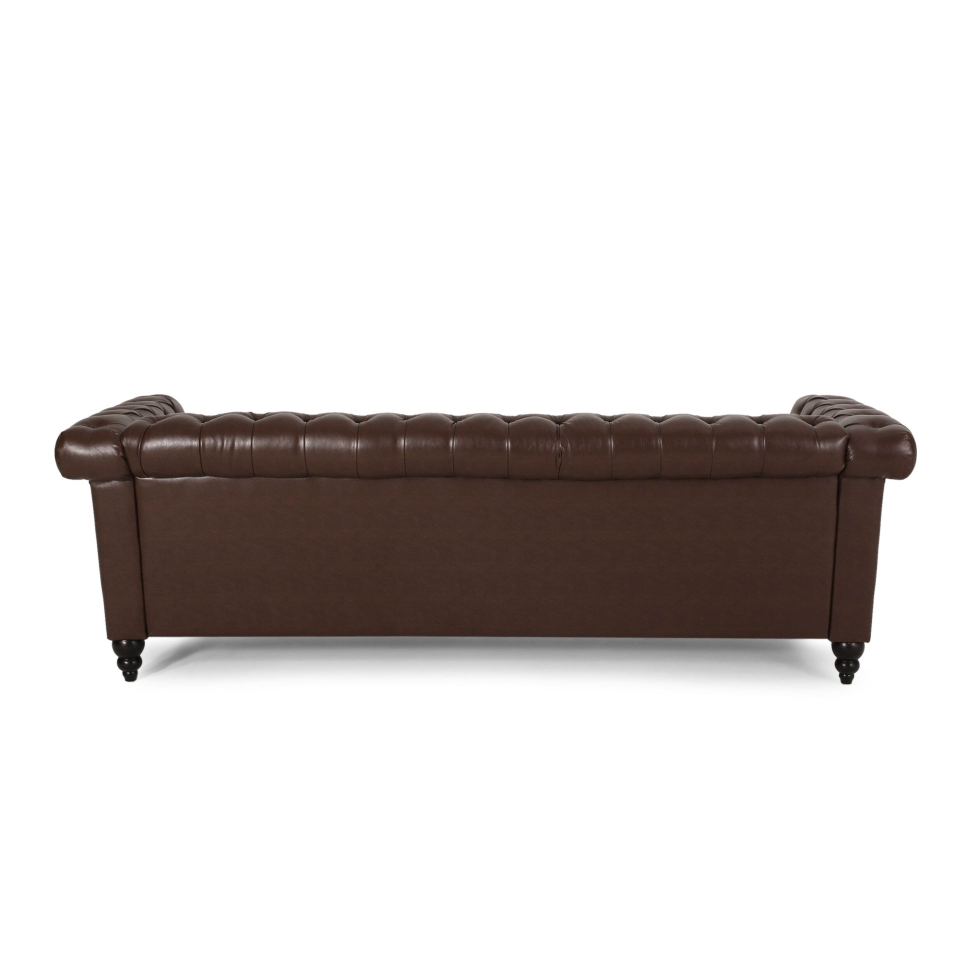 Affirmez votre style avec le canapé 3 places capitonné Parkhurst Chesterfield de Christopher Knight Home. Ce canapé classique arbore une silhouette épurée, un capitonnage profond, des clous décoratifs et d'élégantes coutures en losange sur le dossier et les accoudoirs. Son design discret et son revêtement moelleux en font un ajout élégant et confortable à toute pièce. Reposant sur quatre pieds robustes en bouleau tourné, ce canapé est disponible dans une gamme de couleurs pour s'harmoniser avec tous les décors.