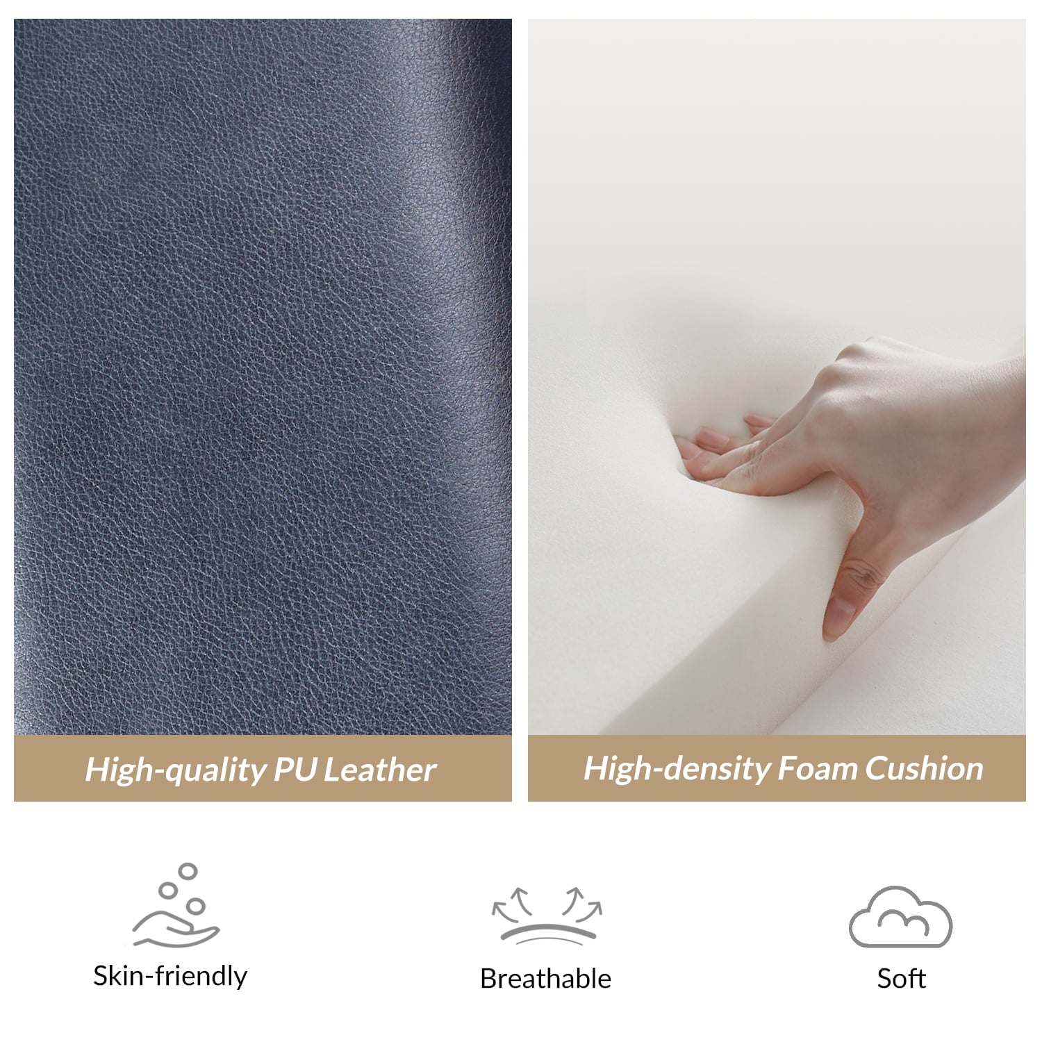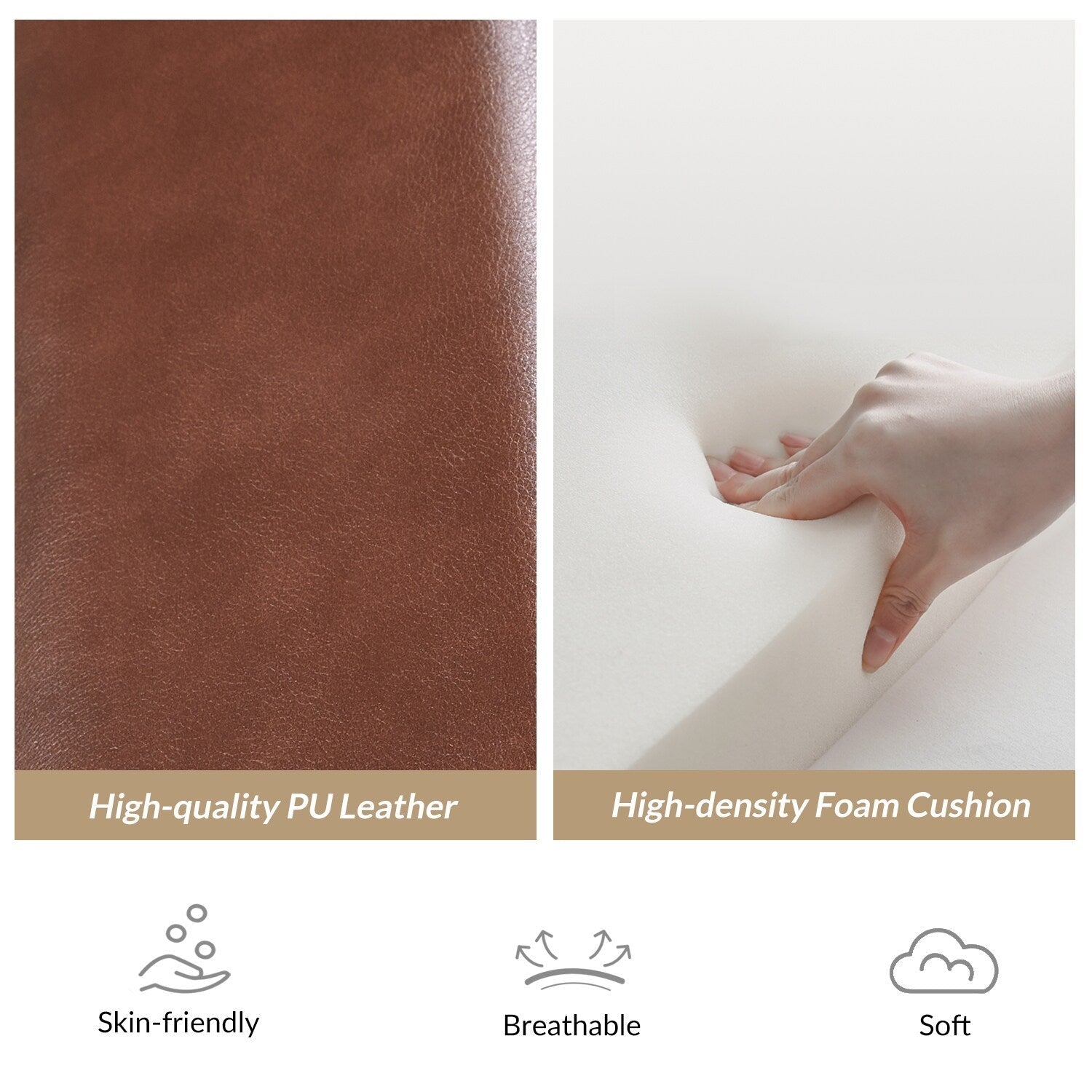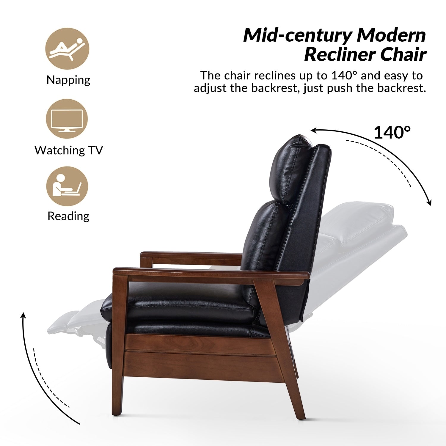 Revêtu de cuir vegan de qualité, ce fauteuil inclinable manuel moderne du milieu du siècle est esthétique, imperméable et facile d'entretien, garantissant une beauté durable. La main courante en bois massif, fabriquée en hévéa robuste, respire la beauté naturelle du bois. Son design ergonomique favorise la détente, tandis que son mécanisme de poussée dissimulé transforme ce fauteuil élégant en un fauteuil inclinable confortable. Son rembourrage en mousse haute densité assure un confort optimal, vous enveloppant dans un cocon de détente. L'ajout judicieux de patins anti-frottements protège vos sols tout en assurant la stabilité du fauteuil. Sublimez votre décoration intérieure avec l'esthétique du milieu du siècle et le charme contemporain de ce fauteuil inclinable manuel en cuir vegan.