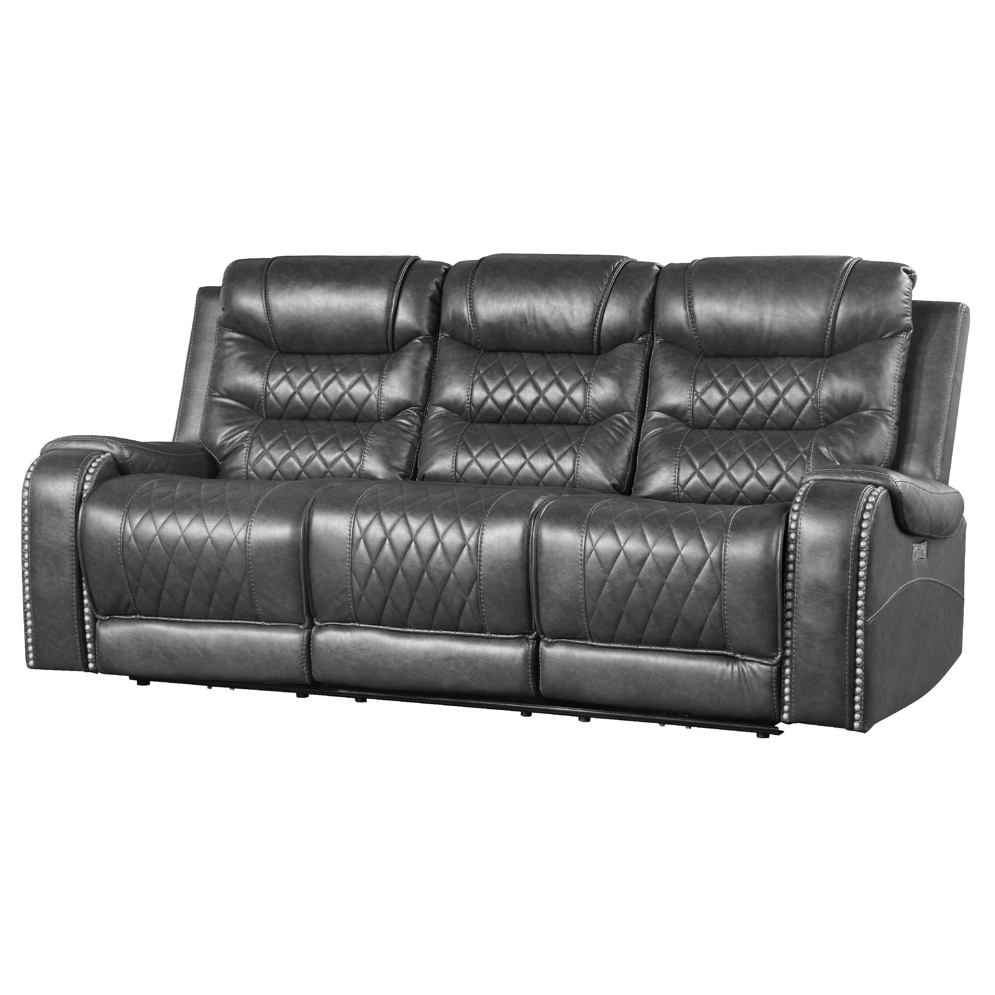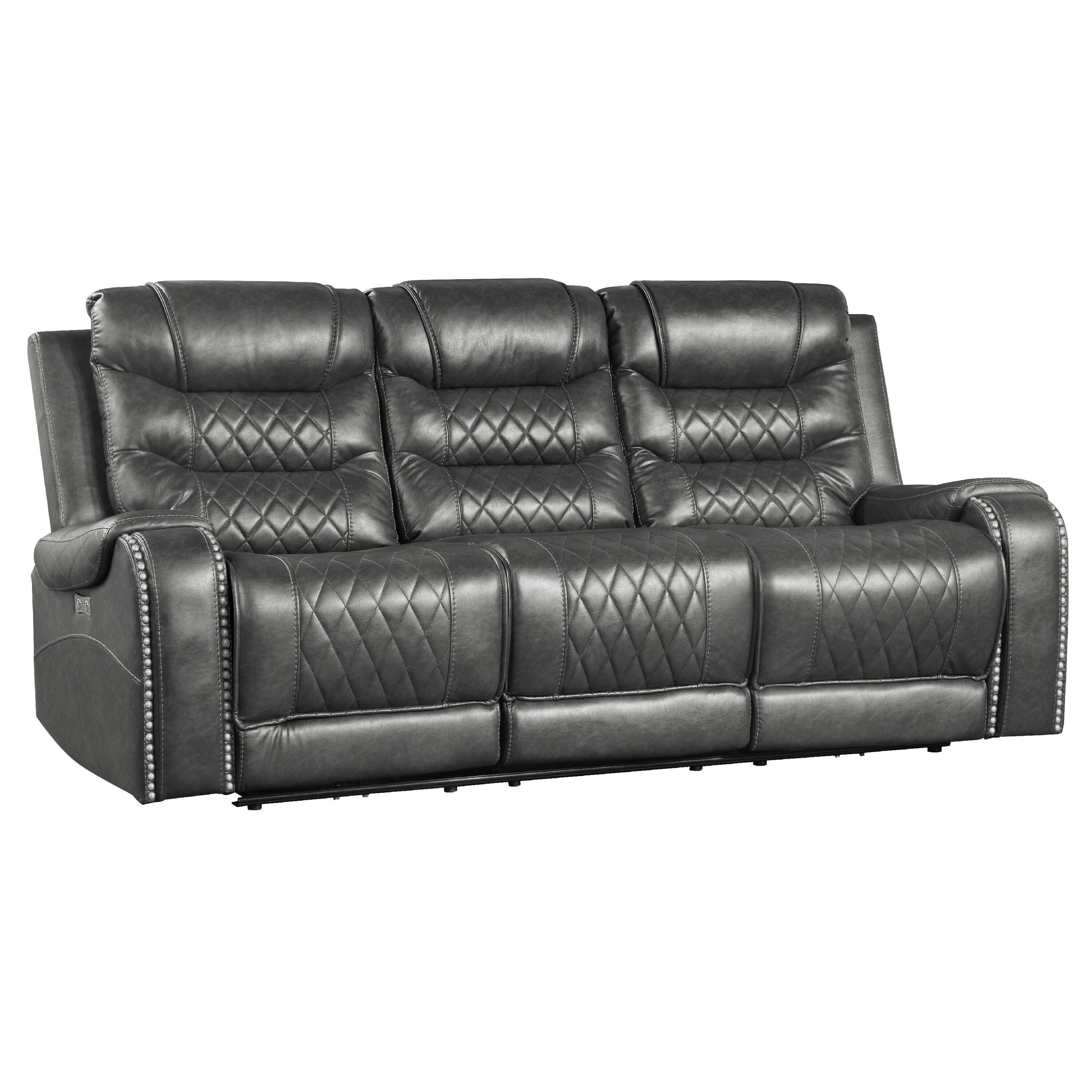Canapé inclinable électrique Paul, 87 pouces, similicuir gris, table rabattable