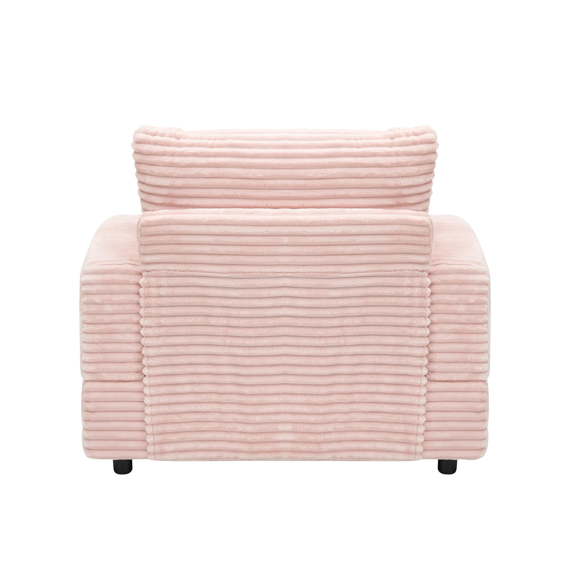 Fauteuil-canapé simple rembourré en velours côtelé rose 39,37 po avec pouf et porte-gobelet pour le salon