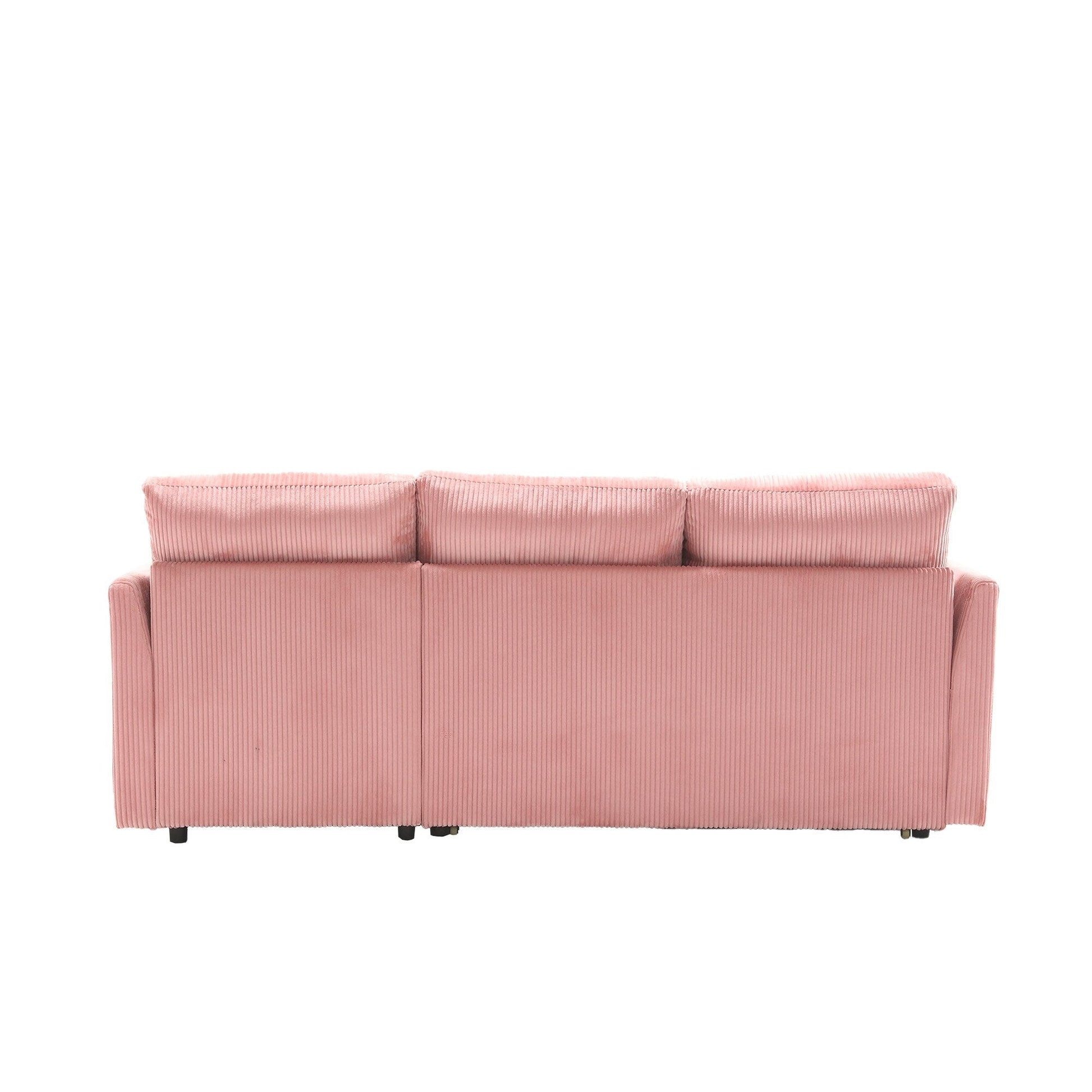 Canapé 3 places en L en velours côtelé rose de 81,1 pouces avec méridienne réversible, rangement et cadre en bois massif
