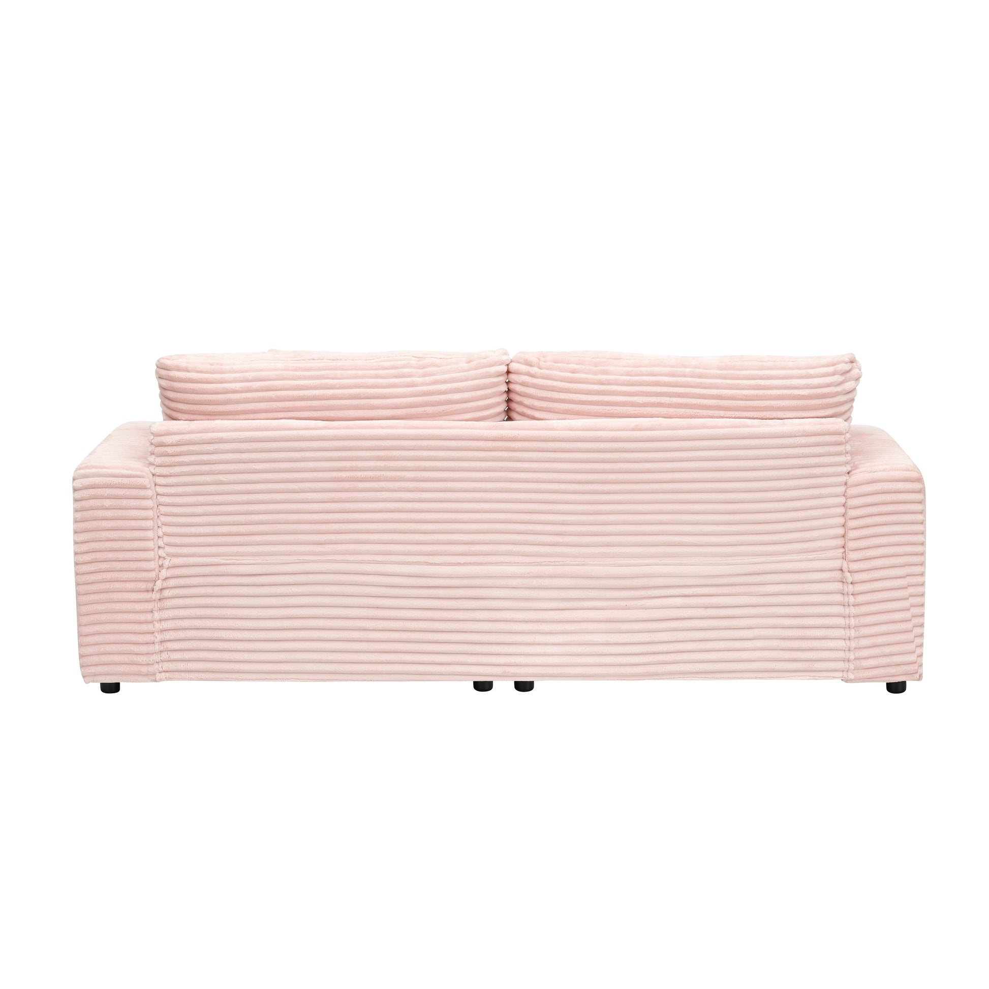 Canapé 3 places en velours côtelé rose moderne 79.3 avec 4 coussins assortis et coussin à ressorts individuel pour le salon