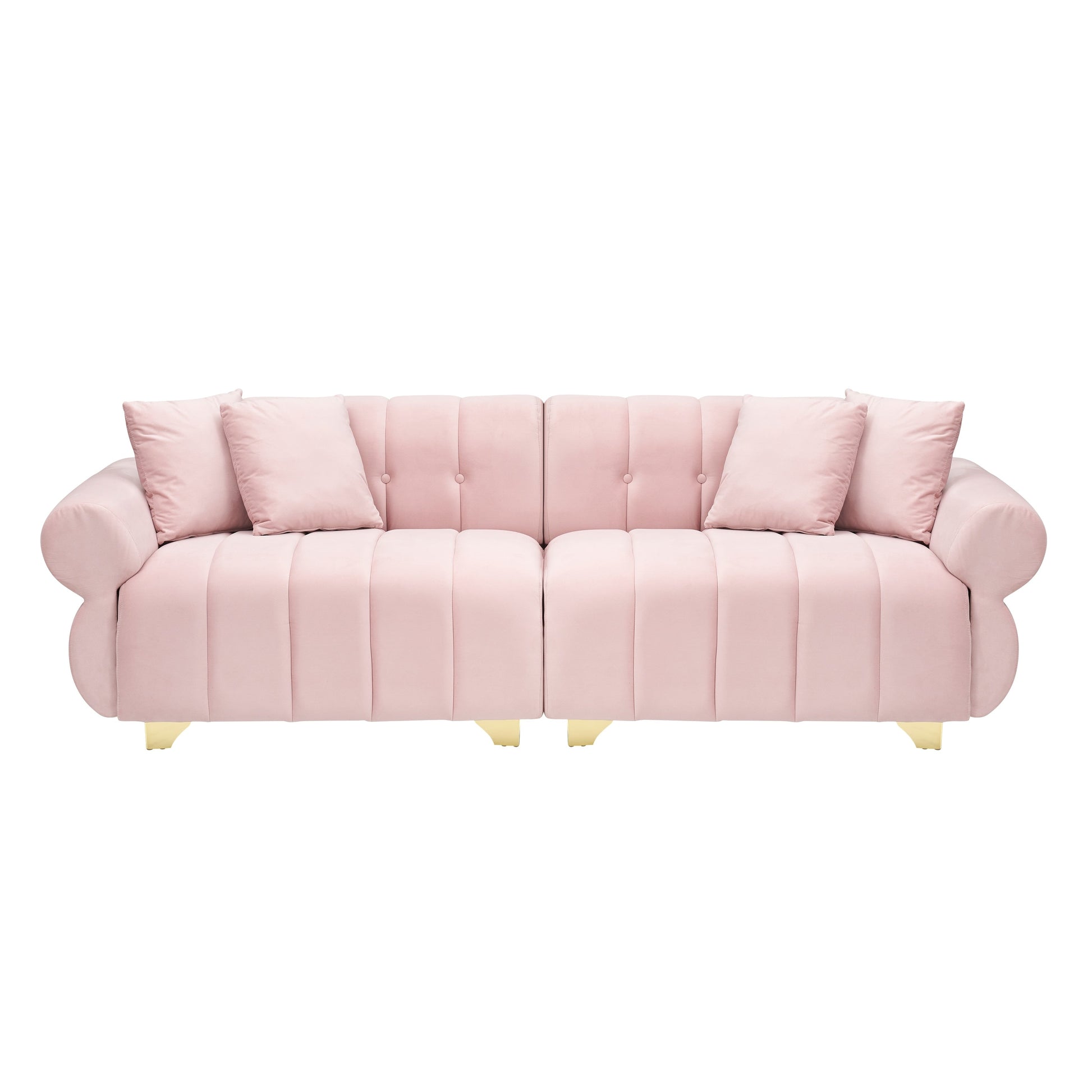 Canapé 3 places en velours rose moderne 89 avec coussins à ressorts et pieds en métal pour le salon