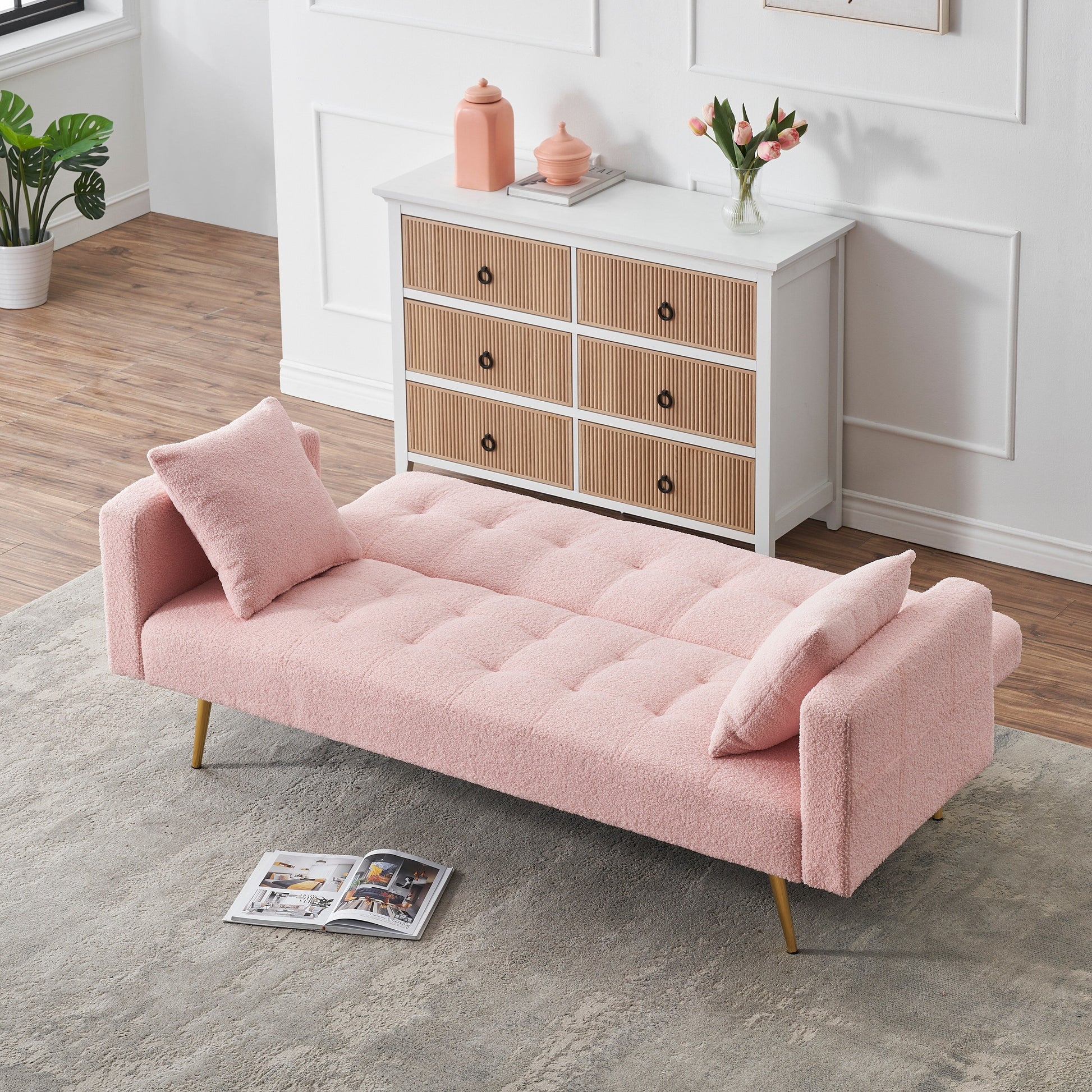 Canapé-lit convertible en polaire rose Teddy
