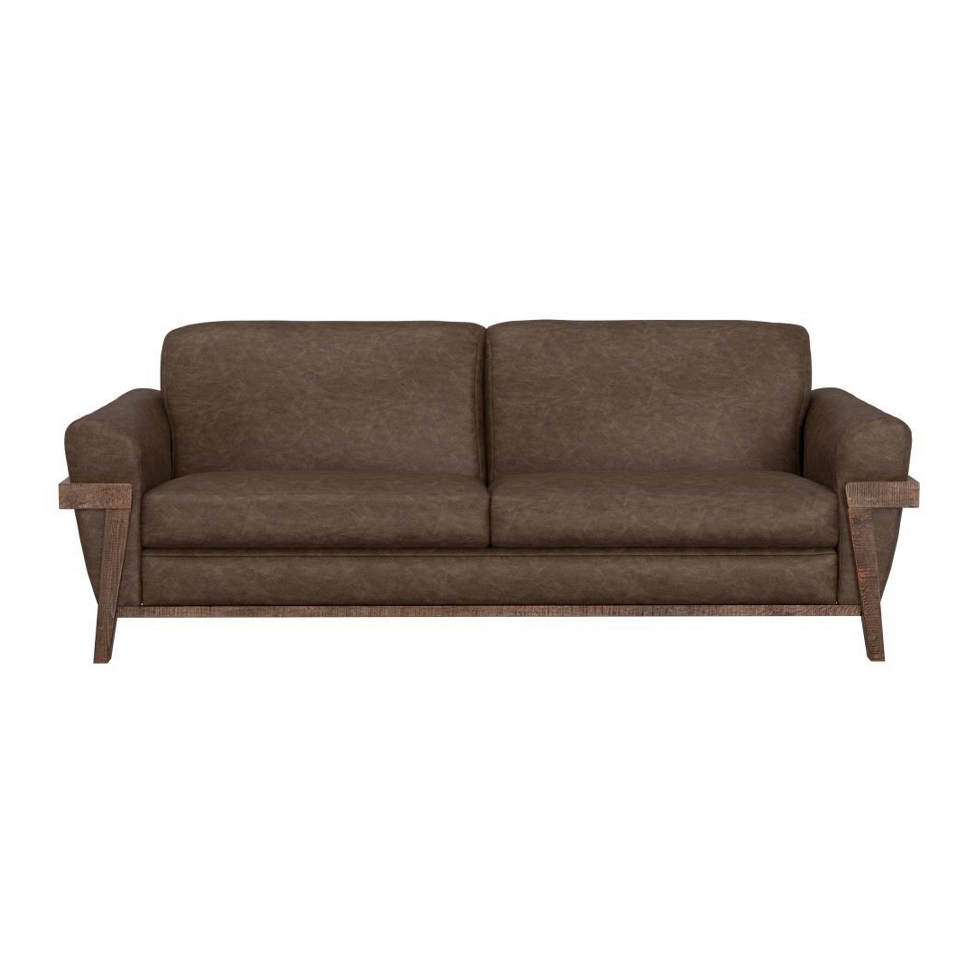 Canapé Pola, 95 pouces, 2 coussins décoratifs, similicuir marron foncé moderne