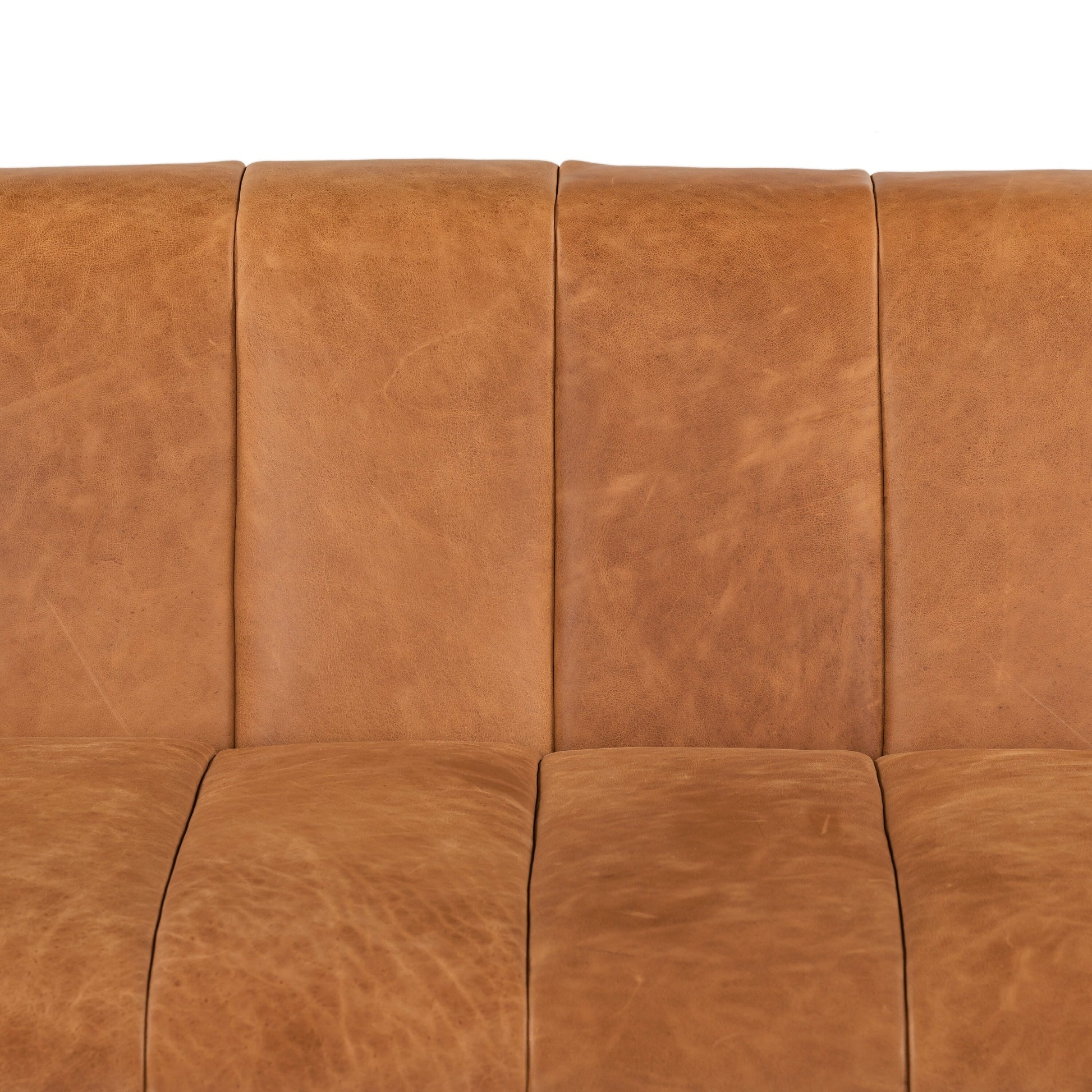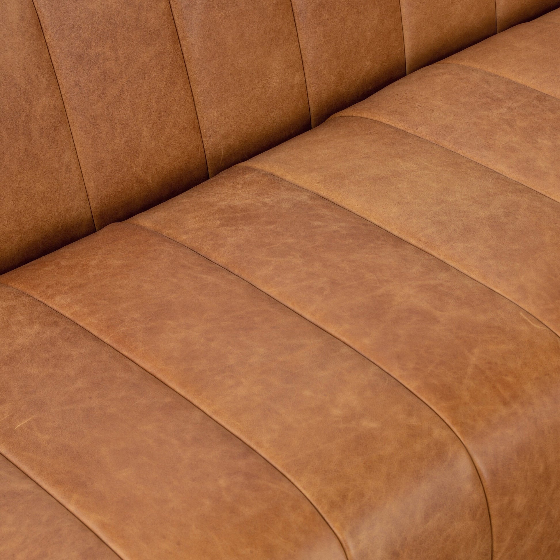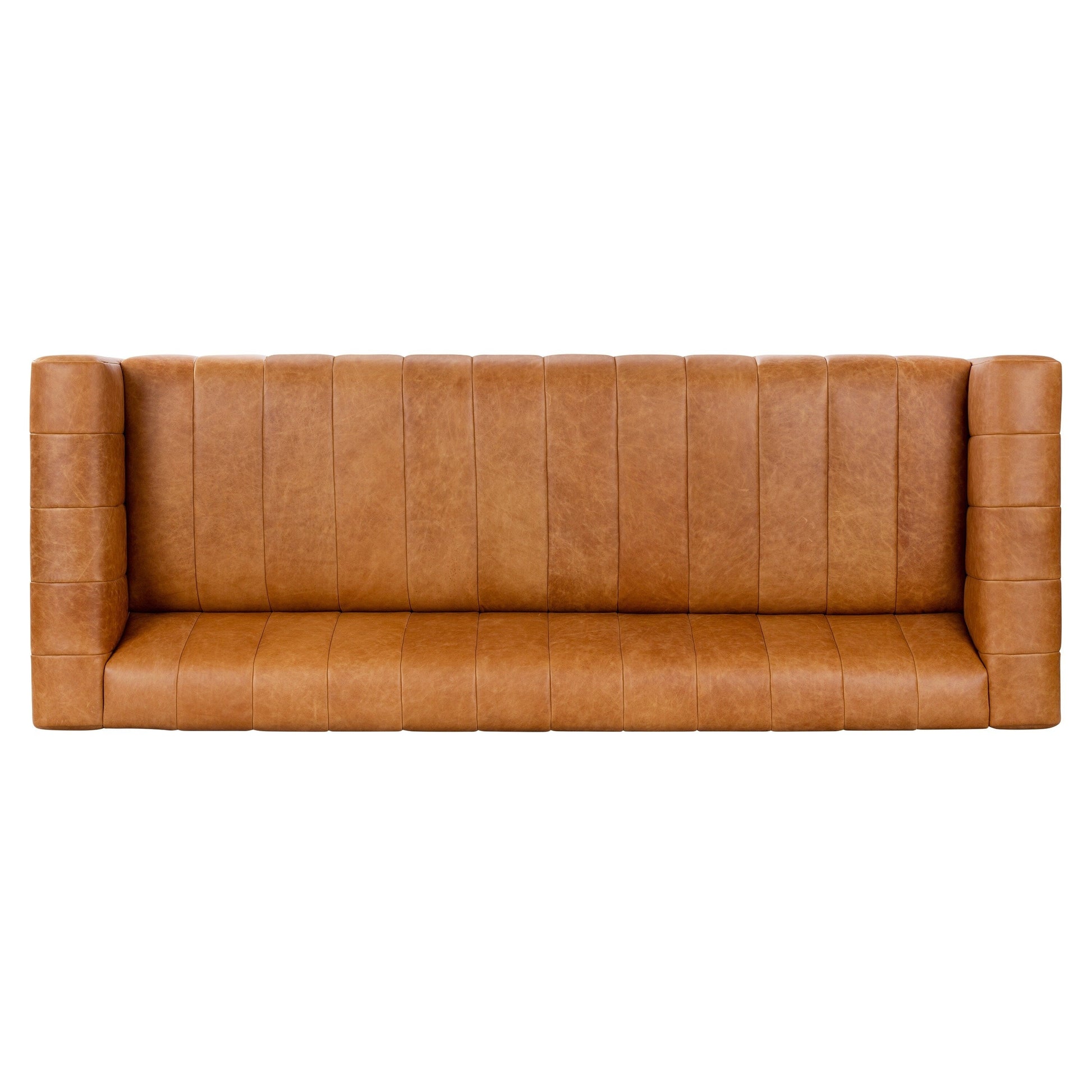 Ce charmant canapé capitonné apportera chaleur et style à votre espace. Le canapé Canale est doté d'un revêtement en cuir italien pleine fleur tanné aniline pur, capitonné et d'un toucher doux et onctueux, qui, comme un bon vin, se bonifie avec le temps. Son profil moderne et discret rehausse votre style et votre confort. Le canapé Canale est prêt pour tous vos marathons cinéma.