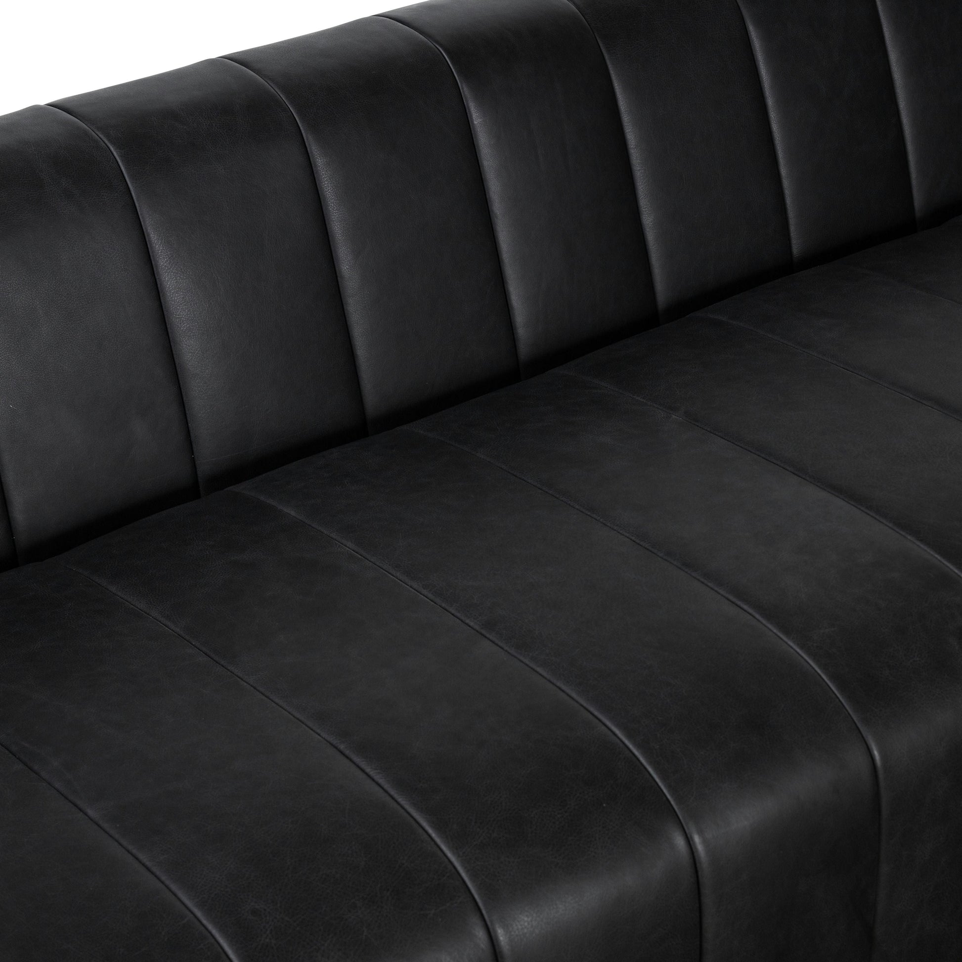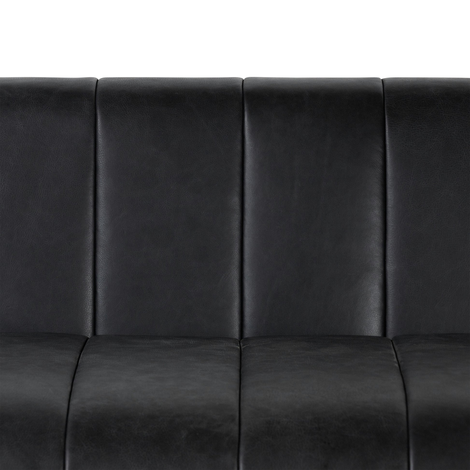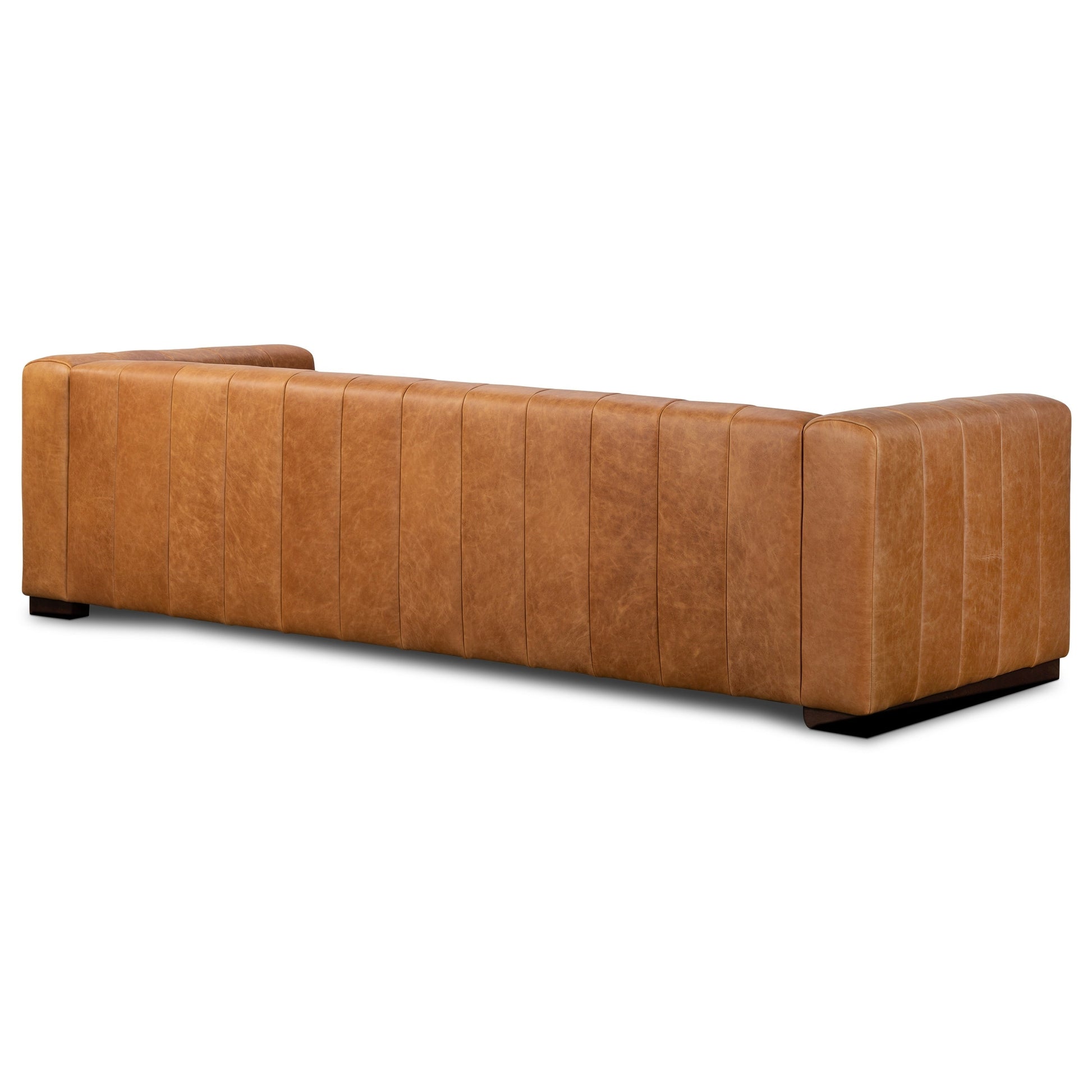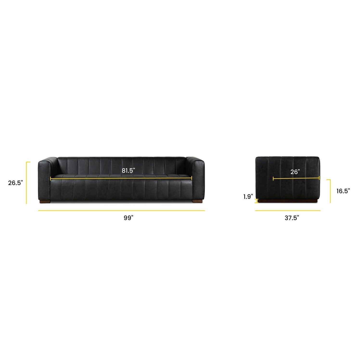 Ce charmant canapé capitonné apportera chaleur et style à votre espace. Le canapé Canale est doté d'un revêtement en cuir italien pleine fleur tanné aniline pur, capitonné et d'un toucher doux et onctueux, qui, comme un bon vin, se bonifie avec le temps. Son profil moderne et discret rehausse votre style et votre confort. Le canapé Canale est prêt pour tous vos marathons cinéma.
