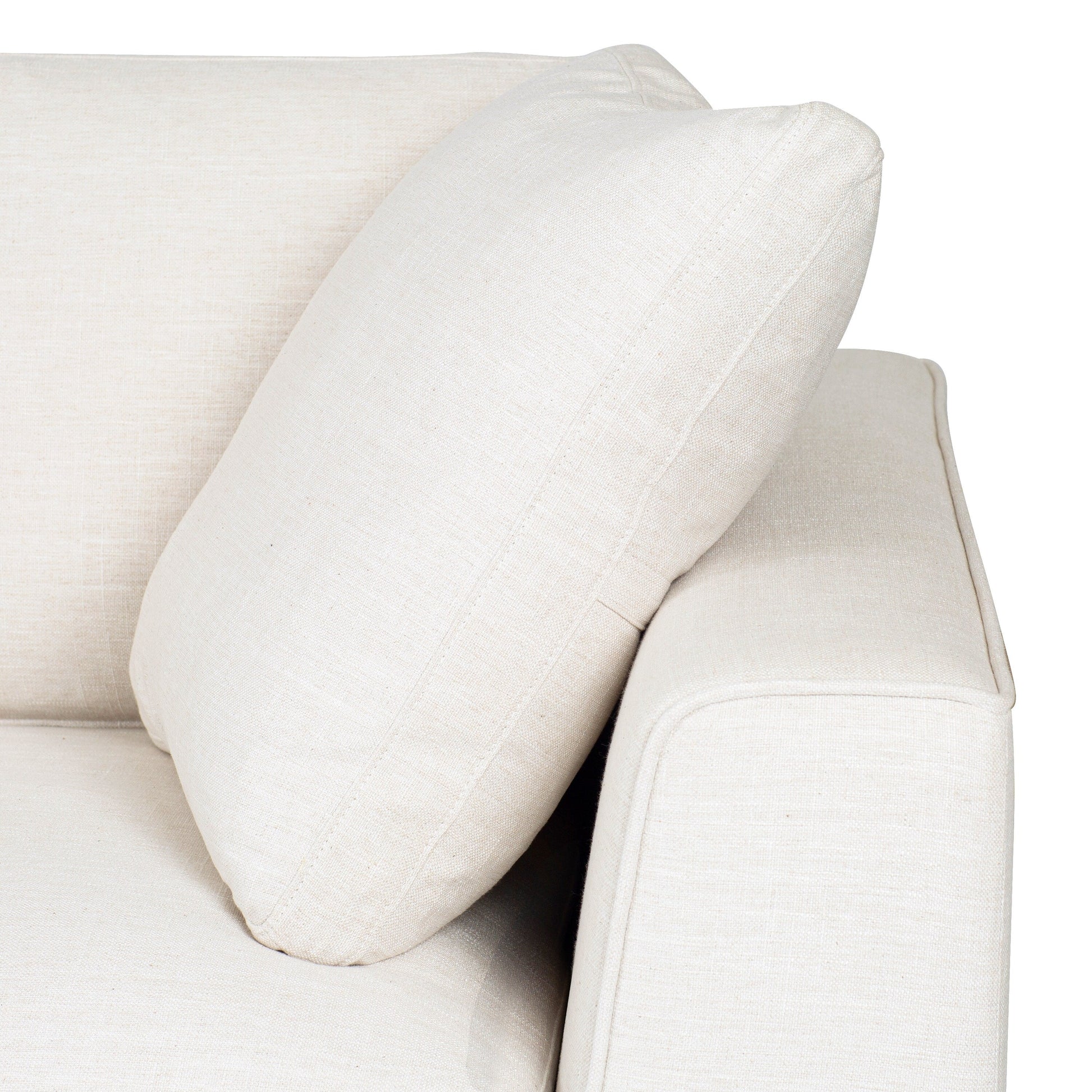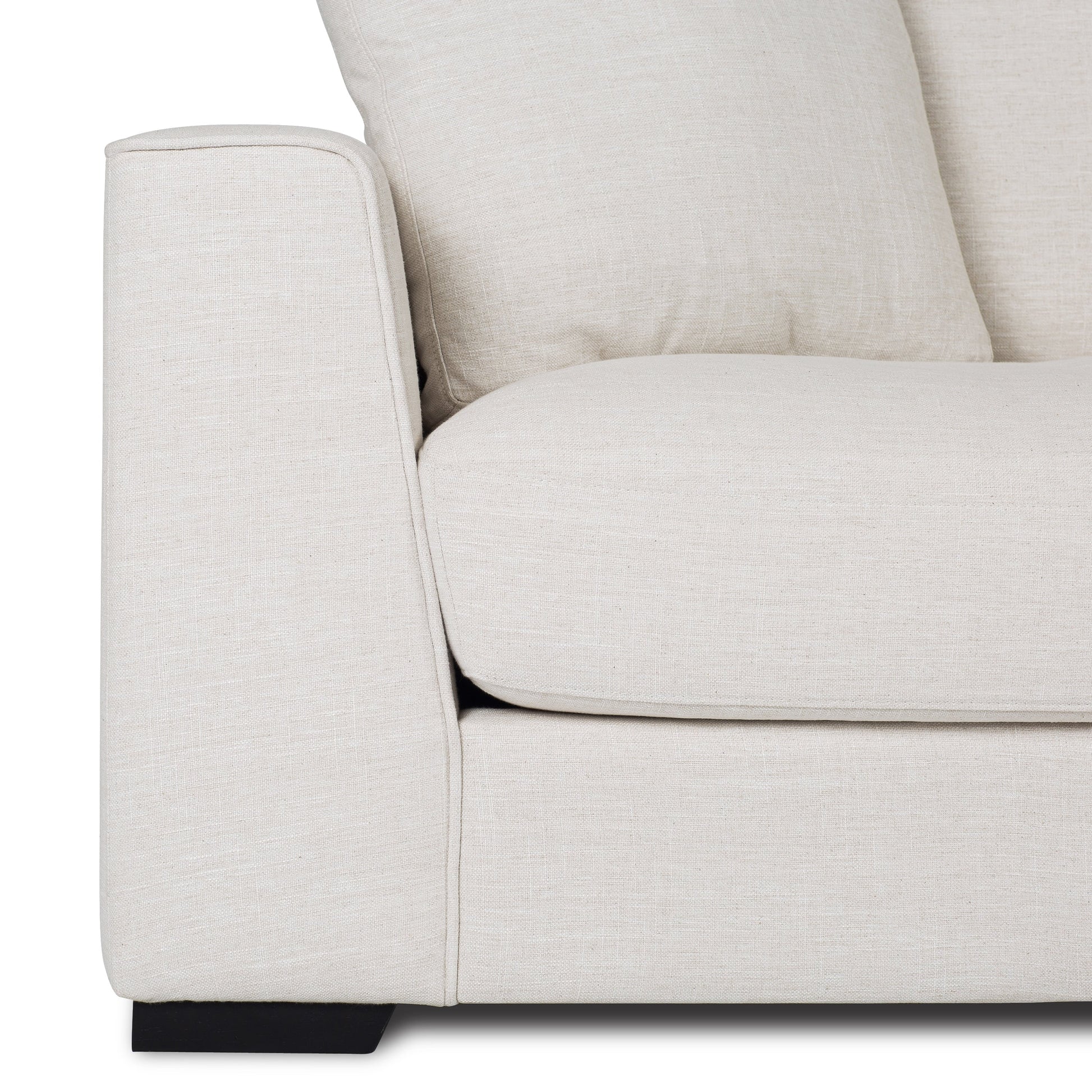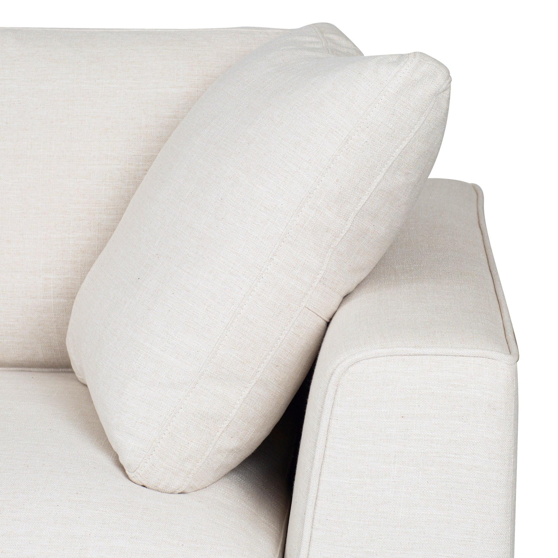 Plongez dans un confort luxueux avec le canapé Capri en tissu neutre, rembourré de polyester et d'écorce. Ce canapé allie à la perfection détente et raffinement, grâce à ses coussins en plumes et fibres pour une douceur exceptionnelle. Sa structure en bois massif aux angles renforcés et ses sangles en caoutchouc résistant offrent un soutien optimal, tandis que ses pieds discrets soulignent sa silhouette élégante. Revêtu d'un tissu polyester résistant, il est disponible en tissus haute performance Frêne brillant ou Blanc bouleau. Livré avec deux coussins 100 % duvet.