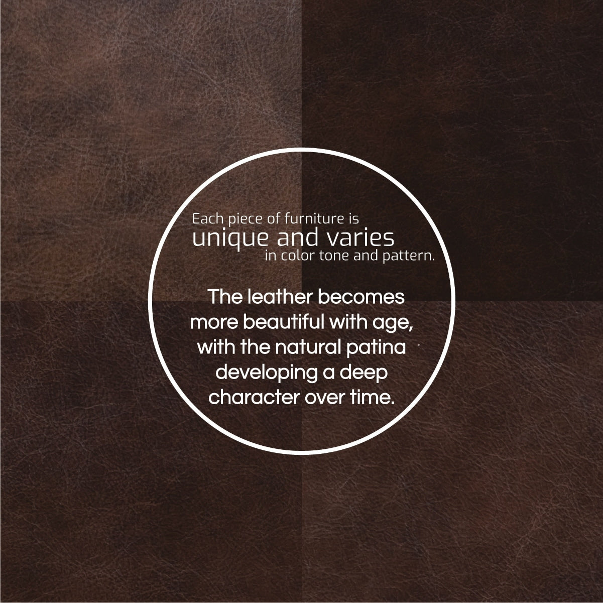 - Les couleurs pure aniline présentent un cuir non pigmenté qui accentue la beauté naturelle de la peau. Le cuir s'éraflera et prendra une belle patine vintage à l'usage.