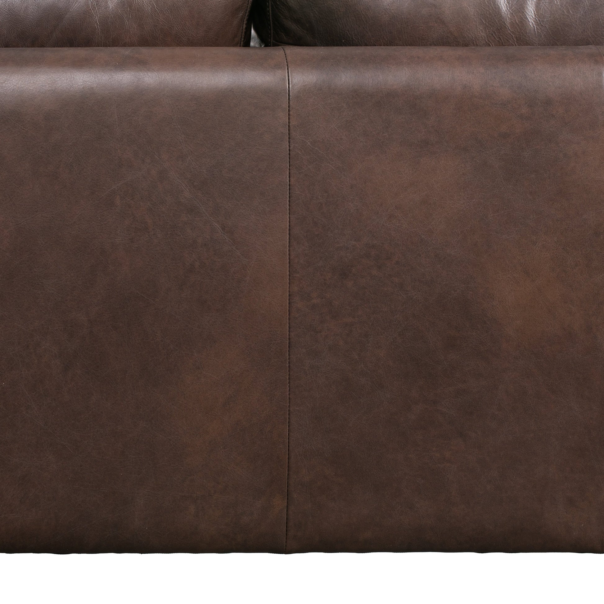 Plongez dans la douceur et le style indulgents de ce canapé Napa en cuir pleine fleur aniline pure (cognac, cacao) ou semi-aniline (tous les autres coloris). Sublimé par un intérieur raffiné, le coloris cognac tanné arbore un revêtement en cuir italien tanné aniline pure d'une beauté exceptionnelle, qui met en valeur la beauté naturelle de chaque peau et lui confère un aspect unique. Grâce à un traitement minimal, les peaux aniline arborent fièrement les caractéristiques naturelles du cuir véritable : rides, marques de croissance, cicatrices cicatrisées, piqûres d'insectes et rayures. Semblable au marbre ou à une belle pièce de bois, chaque cuir présente des variations de couleur et de motif, se changeant, se marquant et se tachant, s'adoucissant et se patinant avec le temps. La structure en bois massif séché au four est dotée de renforts d'angle pour une durabilité accrue. Le support de l'assise et du dossier est assuré par des sangles Pirelli. Un coussin d'assise long et unique est composé d'une mousse haute densité sur un rembourrage en polyester pour un soutien optimal, tandis qu'un surmatelas en plumes de canard assure une douceur douillette. Deux traversins amovibles sont inclus, offrant un style classique et un soutien supplémentaire selon vos besoins.