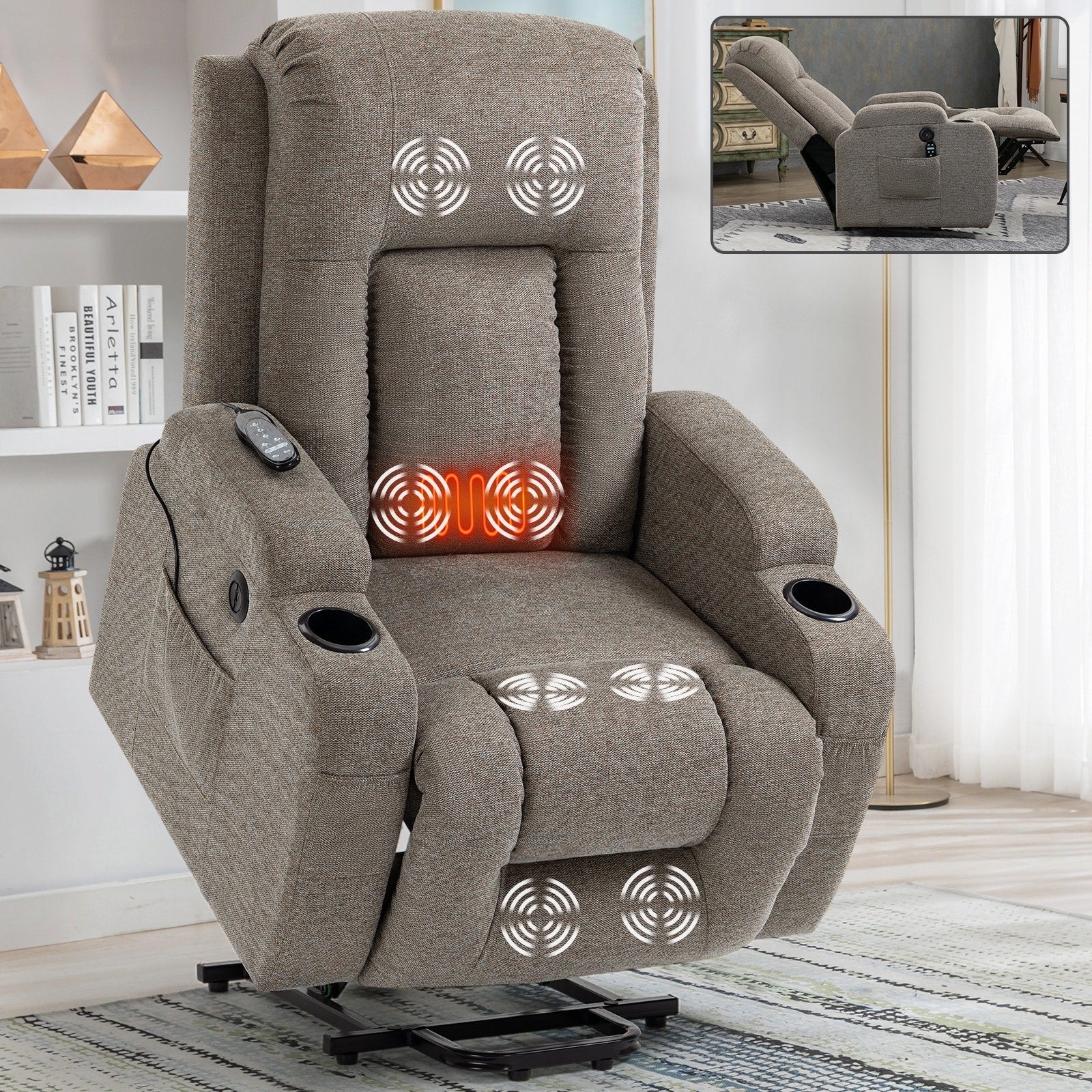 Ce fauteuil inclinable releveur électrique allie parfaitement confort, soutien et praticité, spécialement conçu pour les personnes âgées et les personnes nécessitant une assistance. Son mécanisme de levage à contrepoids, certifié ASTM, permet aux utilisateurs de se lever sans effort, sans se fatiguer le dos ni les genoux. Grâce à ses multiples réglages de position, vous trouverez l'angle idéal pour lire, regarder la télévision ou dormir. Ce fauteuil est équipé de 8 points de massage par vibrations et d'un chauffage lombaire, pour une relaxation complète du corps et une meilleure circulation sanguine. Son port de charge USB intégré, ses porte-gobelets et ses poches latérales ajoutent à son côté pratique : vos appareils sont chargés et vos essentiels à portée de main. Ce fauteuil est non seulement une solution d'assise confortable, mais aussi un compagnon de soutien, facilitant les activités quotidiennes et garantissant une qualité de vie optimale.