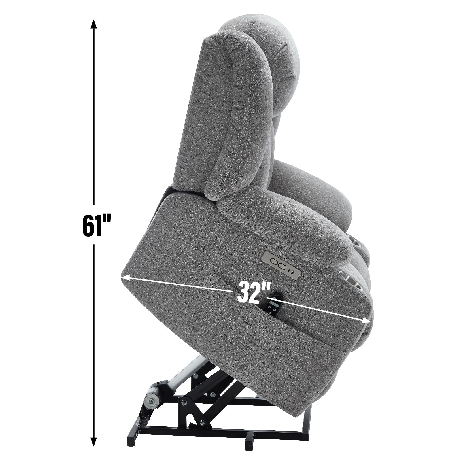 ? ? ? ? ASSISTANCE DE LEVAGE ÉLECTRIQUE : Le mécanisme de levage à contrepoids avec actionneur standard ASTM pousse toute la chaise vers le haut pour aider l'utilisateur à se lever facilement sans ajouter de stress au dos ou aux genoux, ajustez-vous en douceur à la position de levage ou d'inclinaison que vous préférez en appuyant sur deux boutons à l'extérieur de l'accoudoir droit lorsque vous êtes assis sur la chaise.