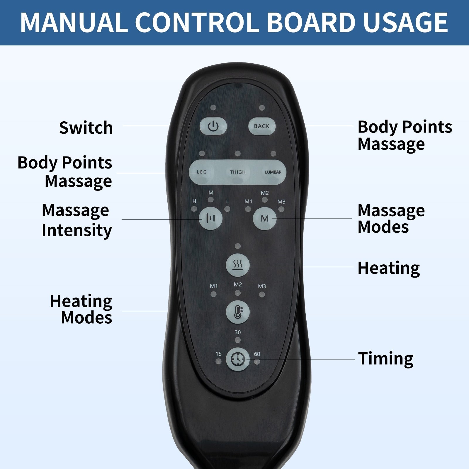 - FONCTIONS DE MASSAGE ET DE CHALEUR LOMBAIRE : Ce fauteuil est équipé de 8 points vibrants (dos, lombaires, cuisses, jambes) et de 3 modes de massage, chaque point étant actionnable individuellement. Vous pouvez masser une zone spécifique séparément. Il est également doté d'une minuterie de 15, 30 ou 60 minutes pour un réglage facile de la durée du massage. Le point chauffant lombaire favorise la circulation sanguine pour une relaxation complète.