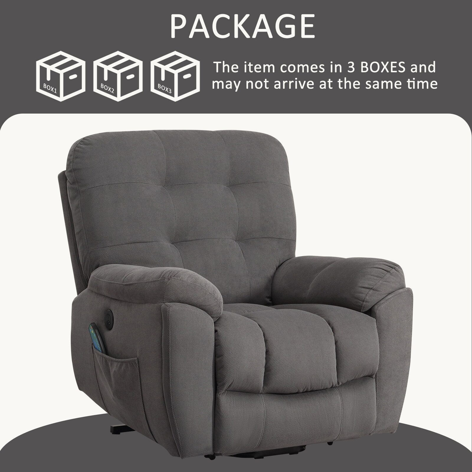Fauteuil inclinable électrique avec massage par vibration, chauffage, port USB, porte-gobelets dissimulés et poches latérales, inclinaison réglable