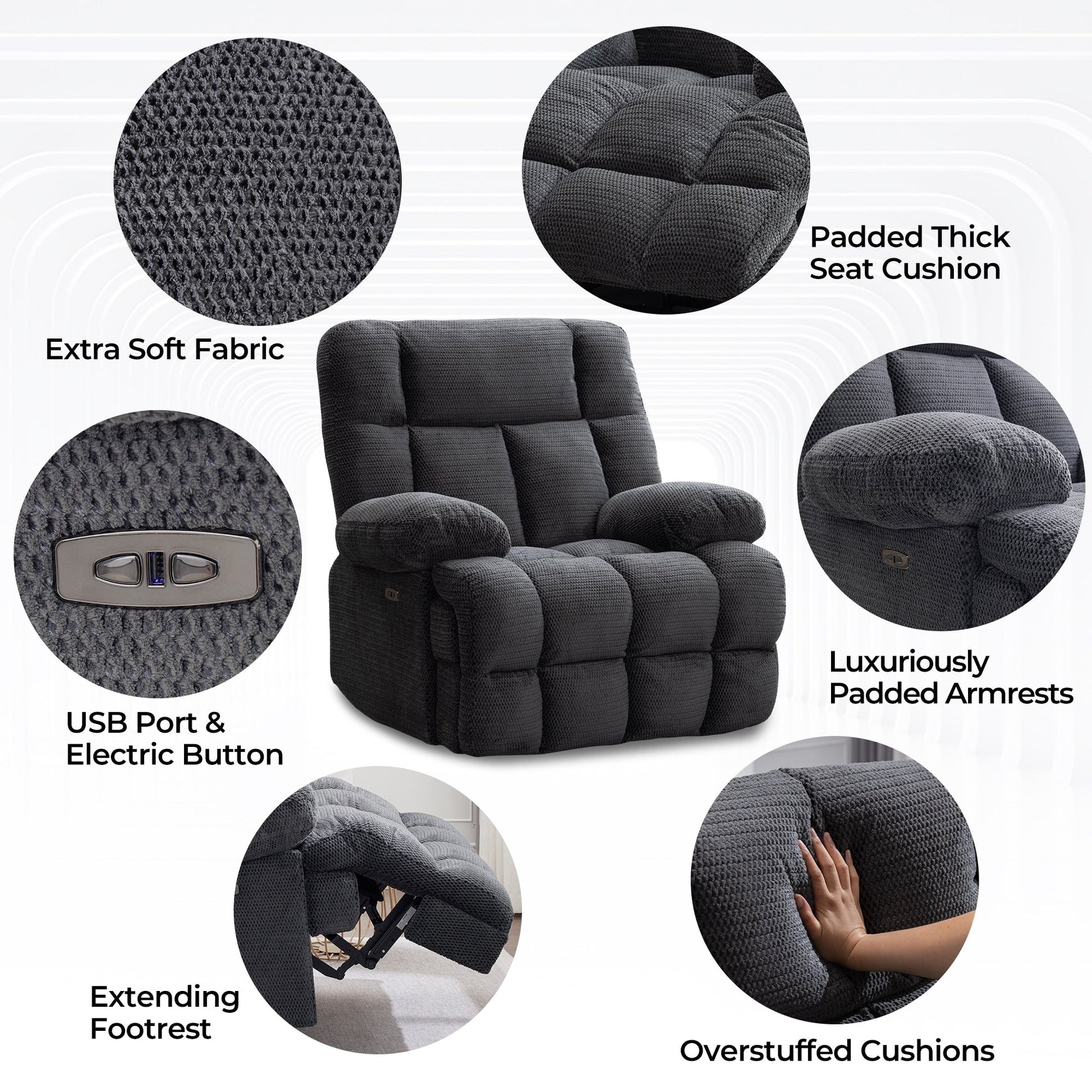 Fauteuil inclinable électrique surdimensionné, fauteuil inclinable extra large Zero Gravity pour salon avec port USB 43 x 39 x 43 cm