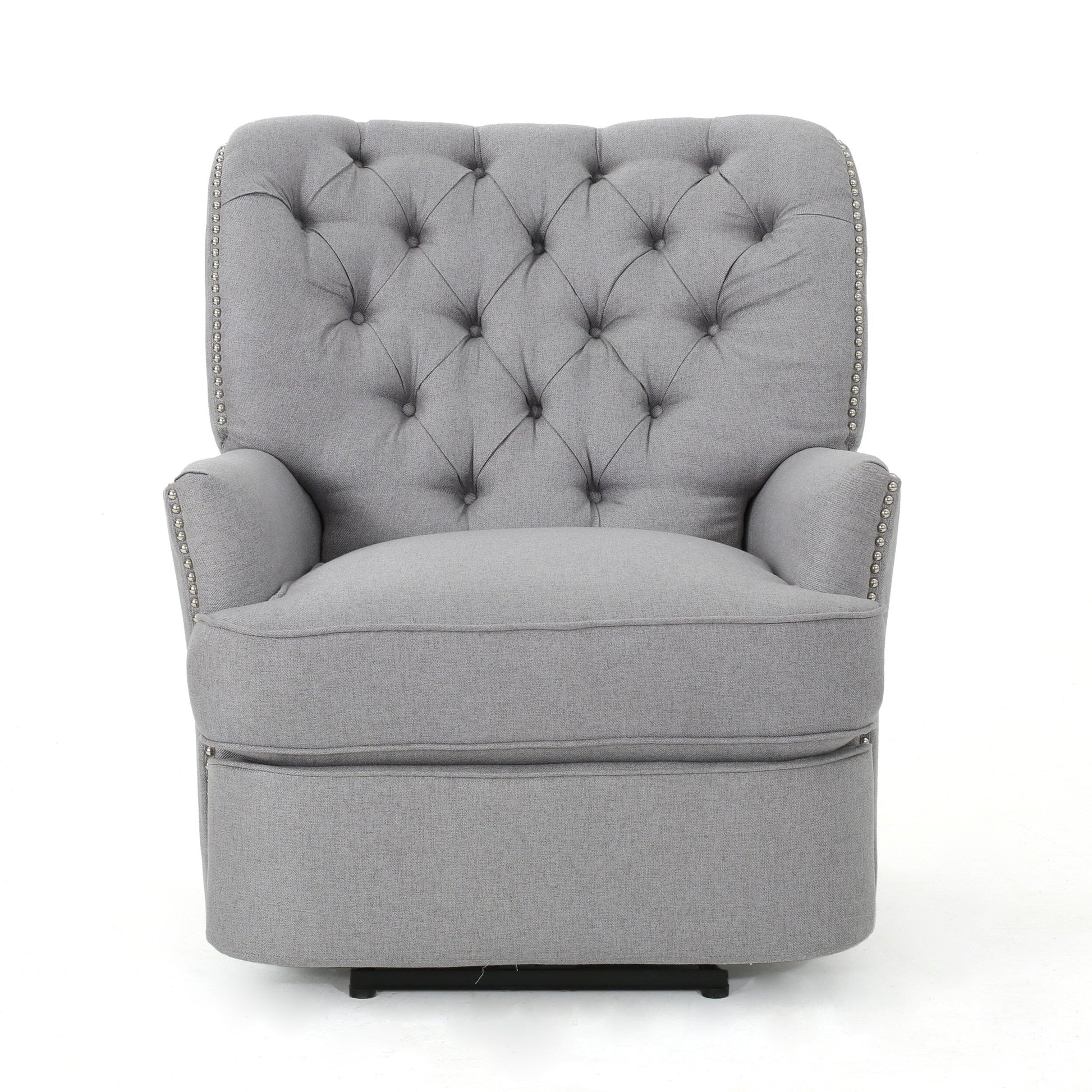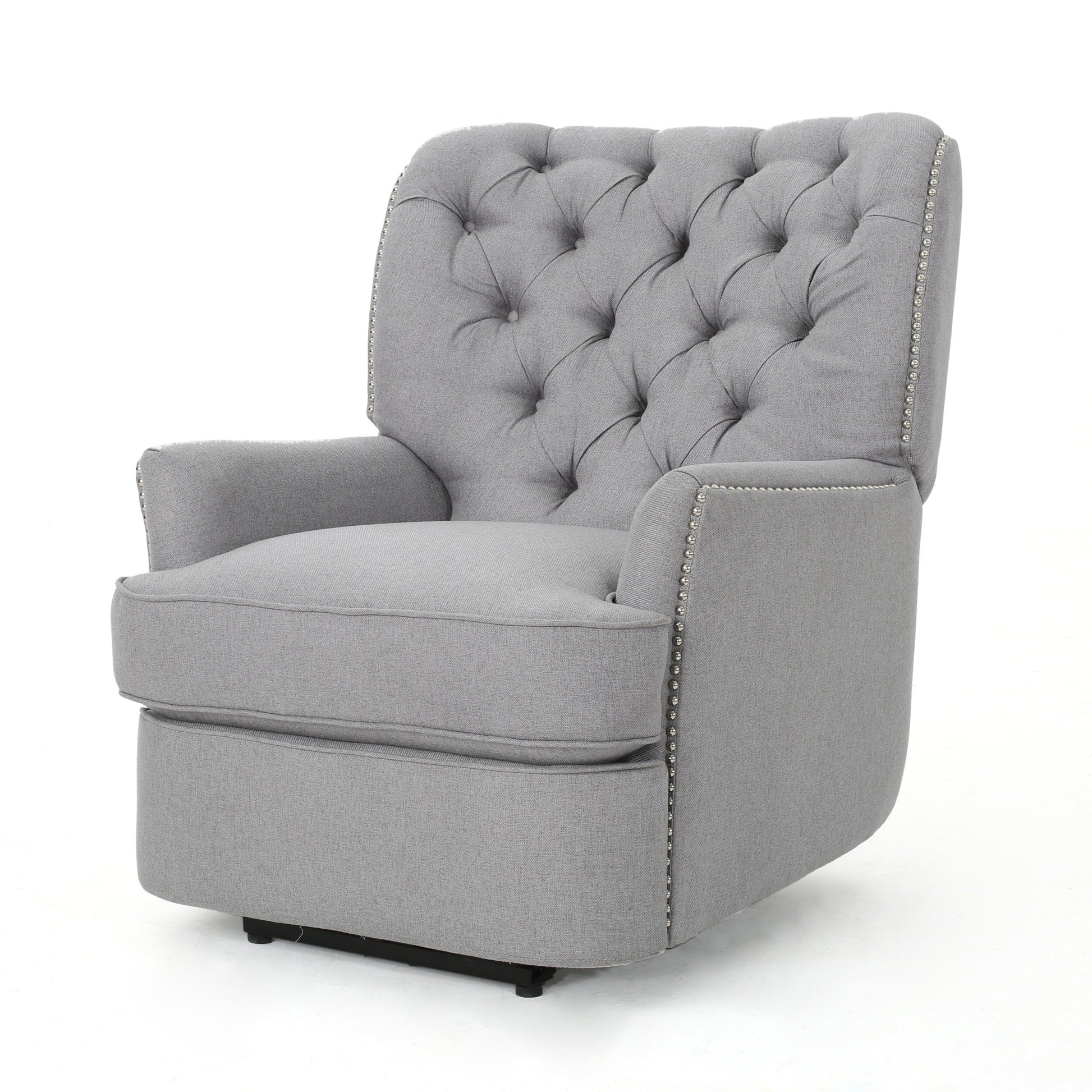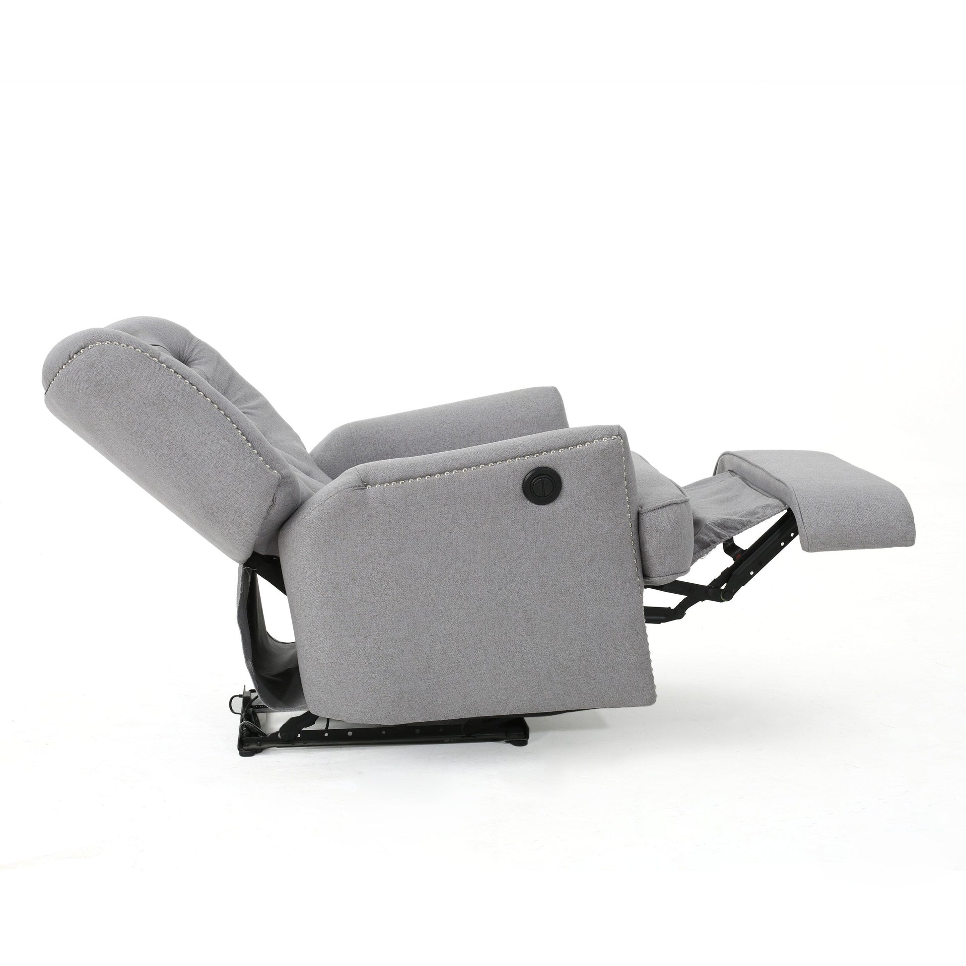 Fauteuil inclinable électrique, tissu doux gris capitonné à boutons, touches cuivrées