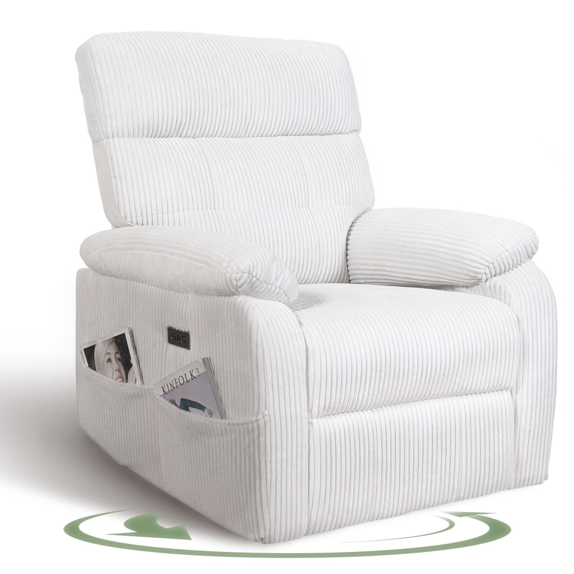 Découvrez l'équilibre parfait entre innovation, confort et style avec notre fauteuil inclinable pivotant et polyvalent. Que vous berciez votre enfant pour l'endormir, vous prélassiez avec un bon livre ou regardiez vos séries préférées en boucle, ce fauteuil s'adapte à vos besoins grâce à des réglages électriques fluides, un soutien ergonomique et des fonctionnalités bien pensées comme des ports de charge intégrés. Plus qu'un simple fauteuil, c'est votre nouvel espace de détente préféré.