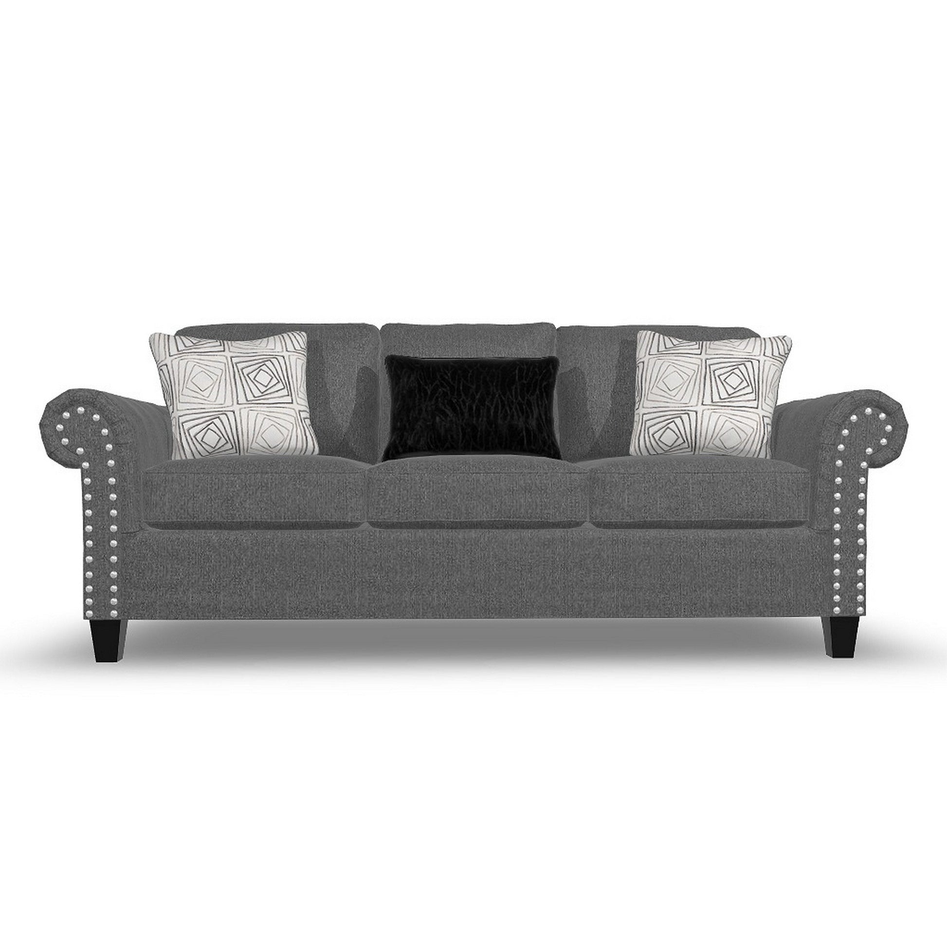 Sublimez votre espace de vie avec ce canapé, un chef-d'œuvre de confort et de style. Doté de coussins en mousse de haute qualité enveloppés de polyfibre, ce canapé allie durabilité et confort. Son élégante bordure cloutée couleur étain et ses accoudoirs roulés rehaussent son allure design, tandis que son revêtement en chenille texturée grise lui confère une touche douce et accueillante. Découvrez notre collection Preston pour en savoir plus.