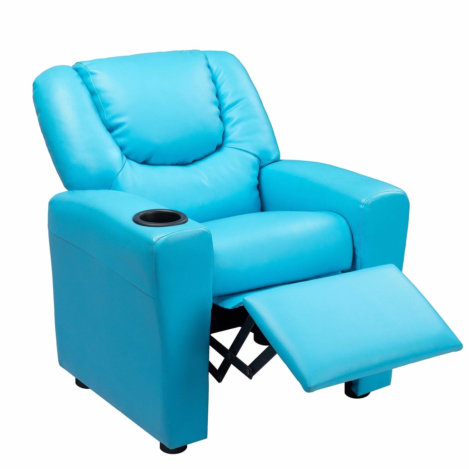 Fauteuil inclinable en PVC pour enfants avec fonction d'inclinaison par poussée, porte-gobelet et repose-pieds confortable