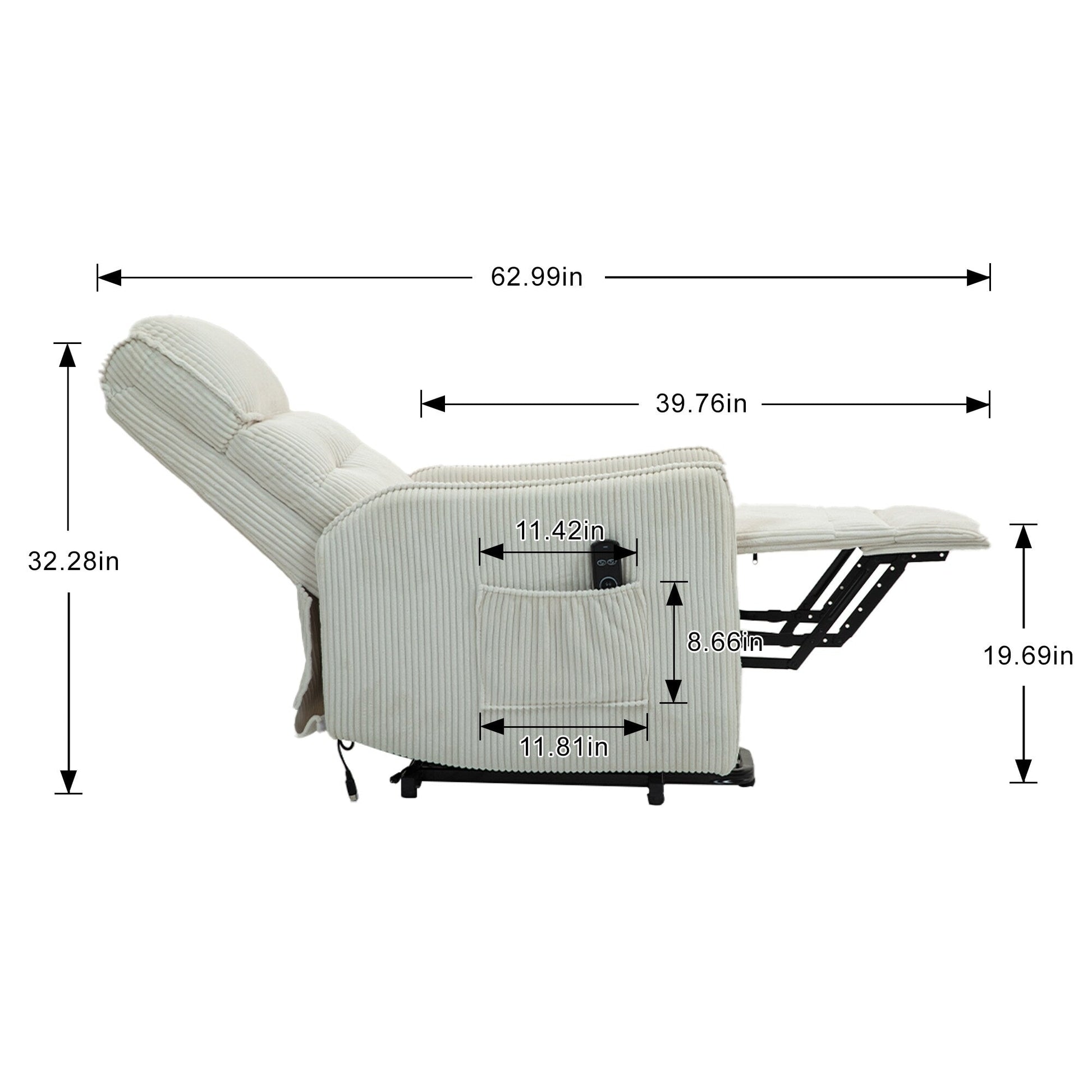 Fauteuil inclinable électrique pour adultes, avec coussin de siège à ressorts ensachés et poche latérale