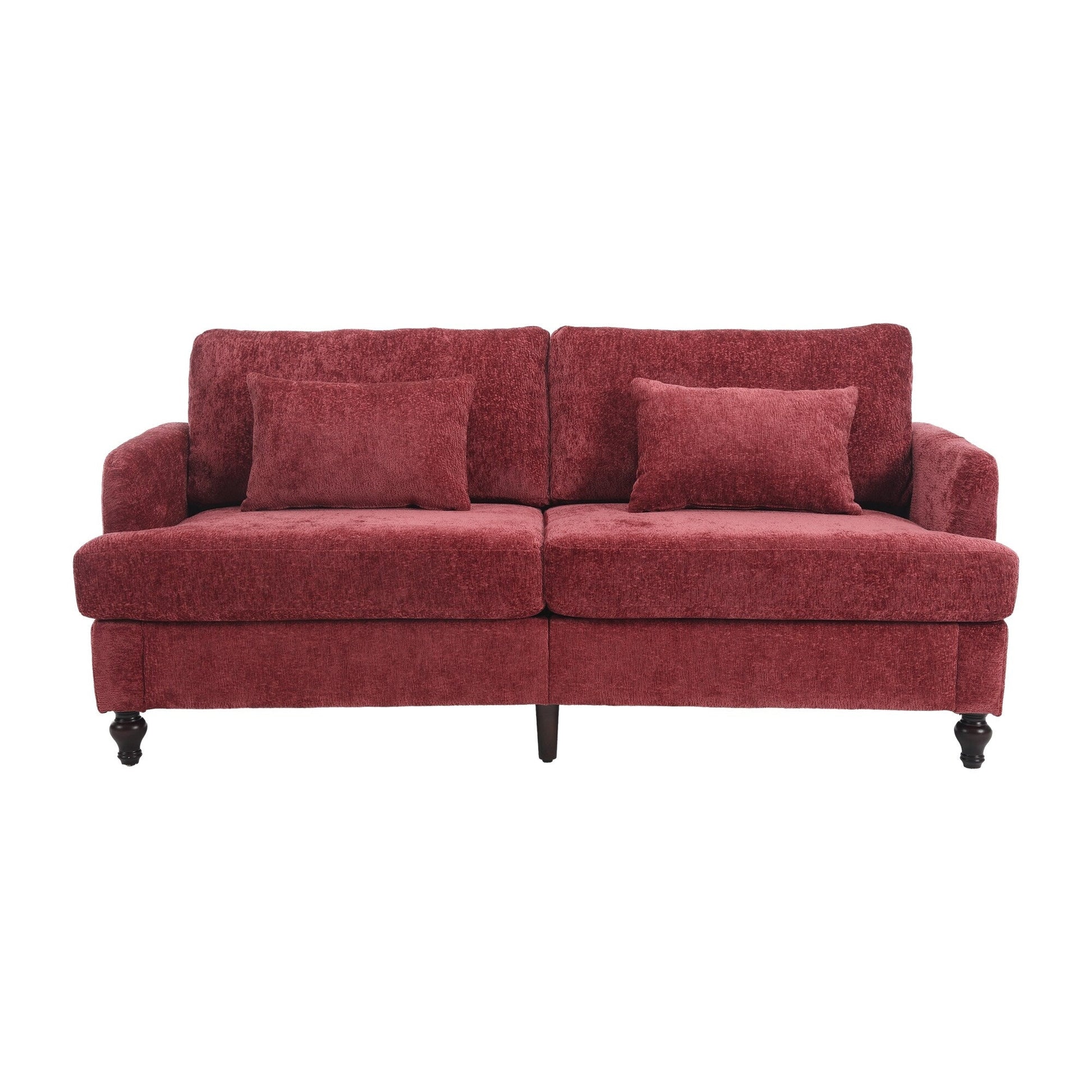 Canapé 2 places en tissu rouge 68,9 pouces avec coussins amovibles et cadre en bois massif