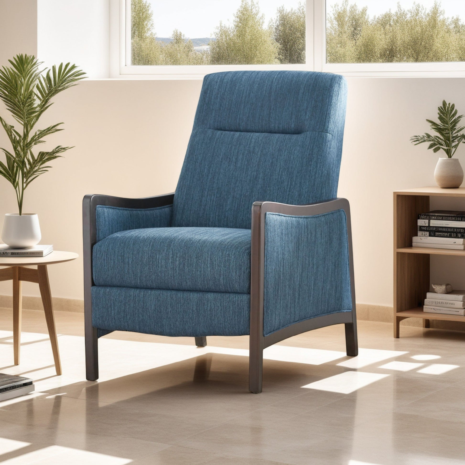 Fauteuil inclinable Reina Push Back, bouleau brun, tissu bleu marine