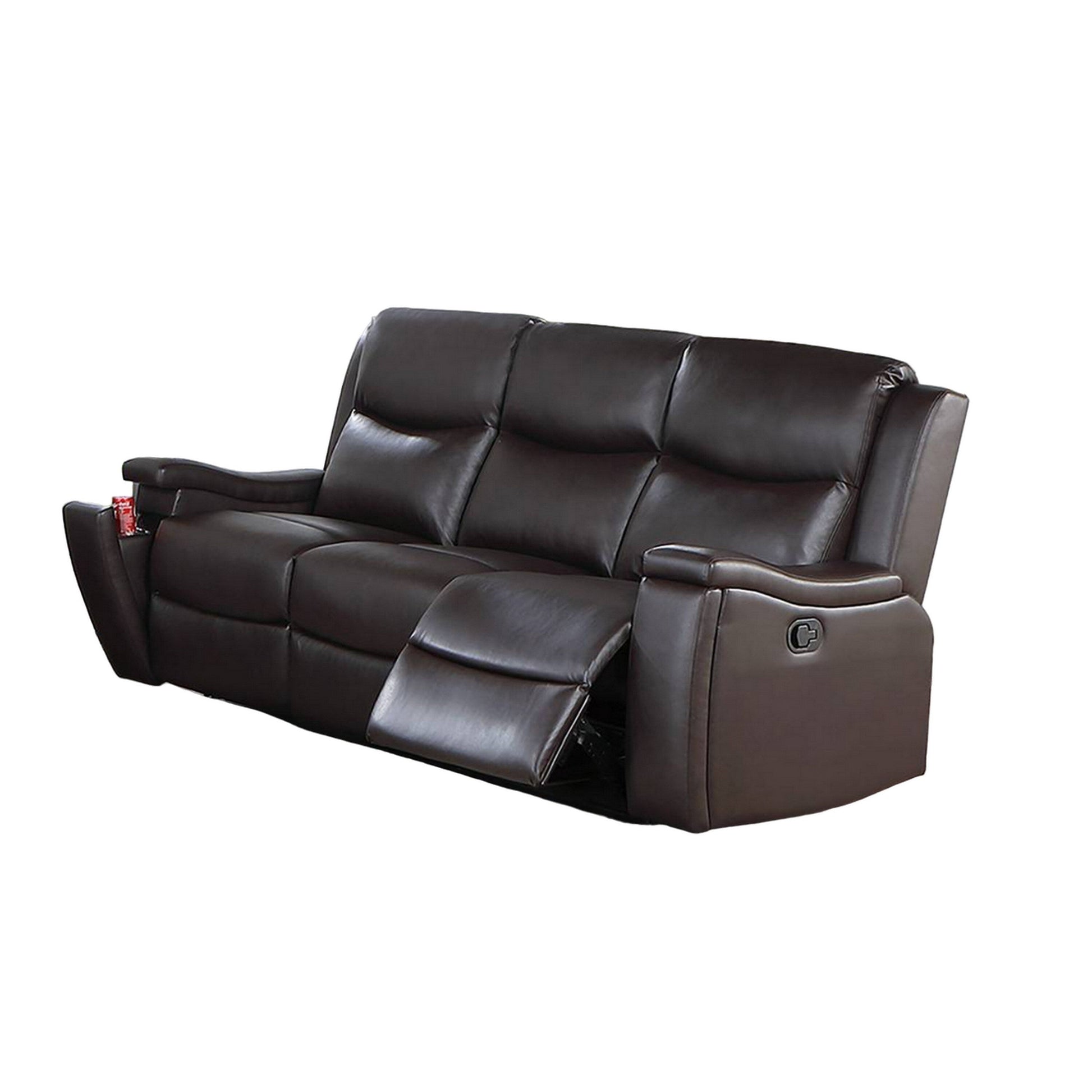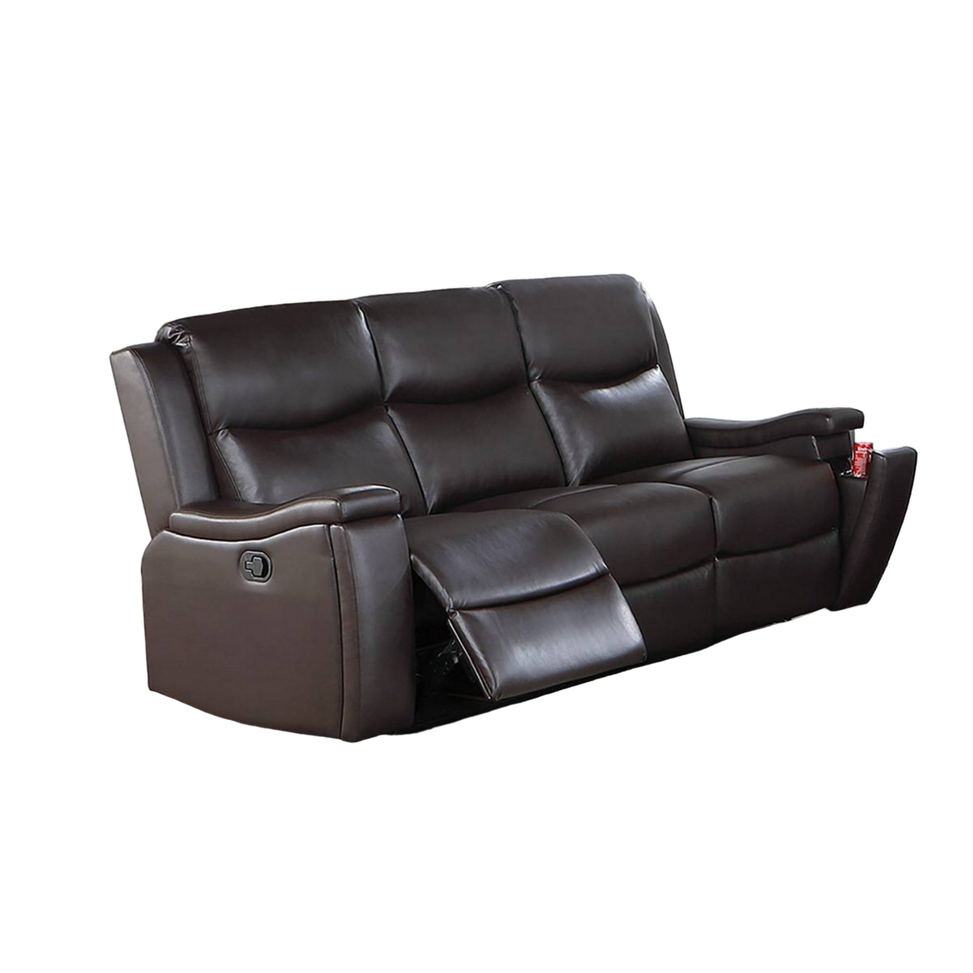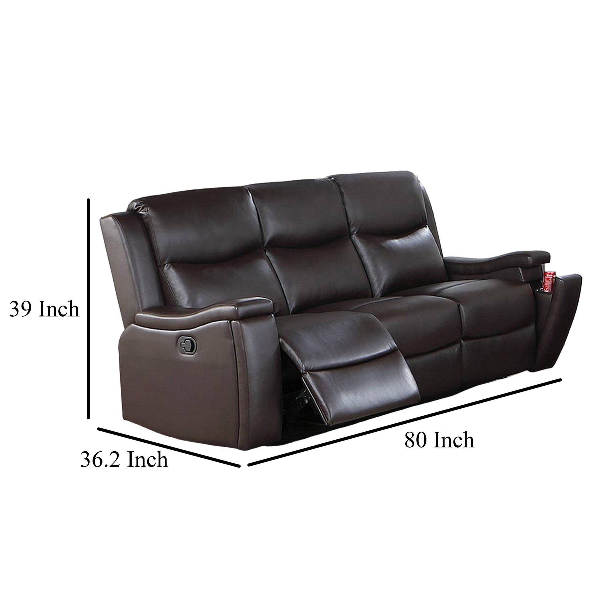 Canapé inclinable manuel Renna, porte-gobelet, similicuir marron, 80 pouces